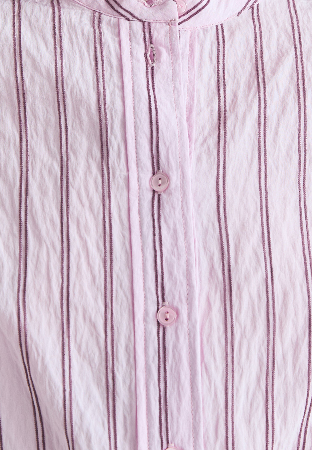 Striped shirt made of slightly stretchy cotton. Regular fit, slightly high collar and button fastening. Front pleated detail with shoulder pad effect. Long sleeves with cuffs.