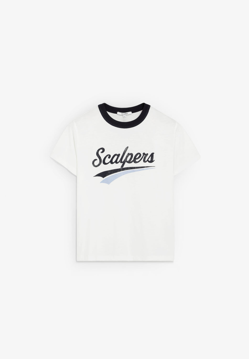 T-shirt made of 100% cotton. Regular Fit. Round neck and short sleeves. Back print and chest detail. Striped detail on the sleeves.