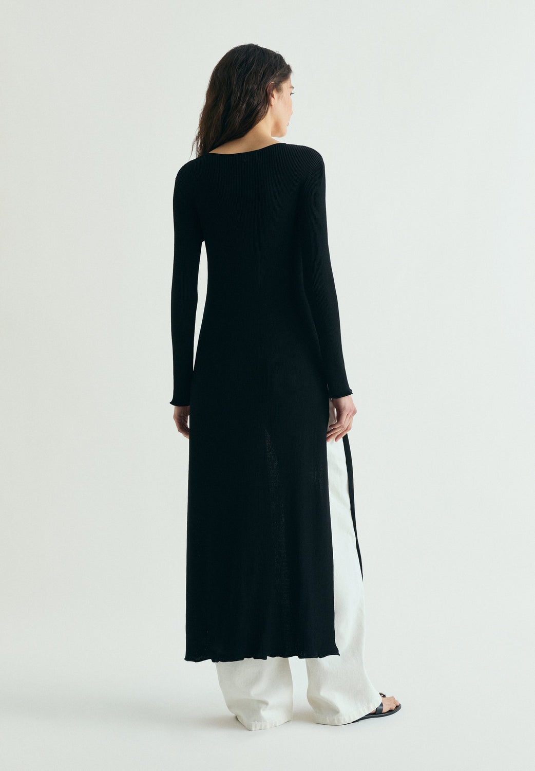 LONG RIBBED KNIT CARDIGAN
