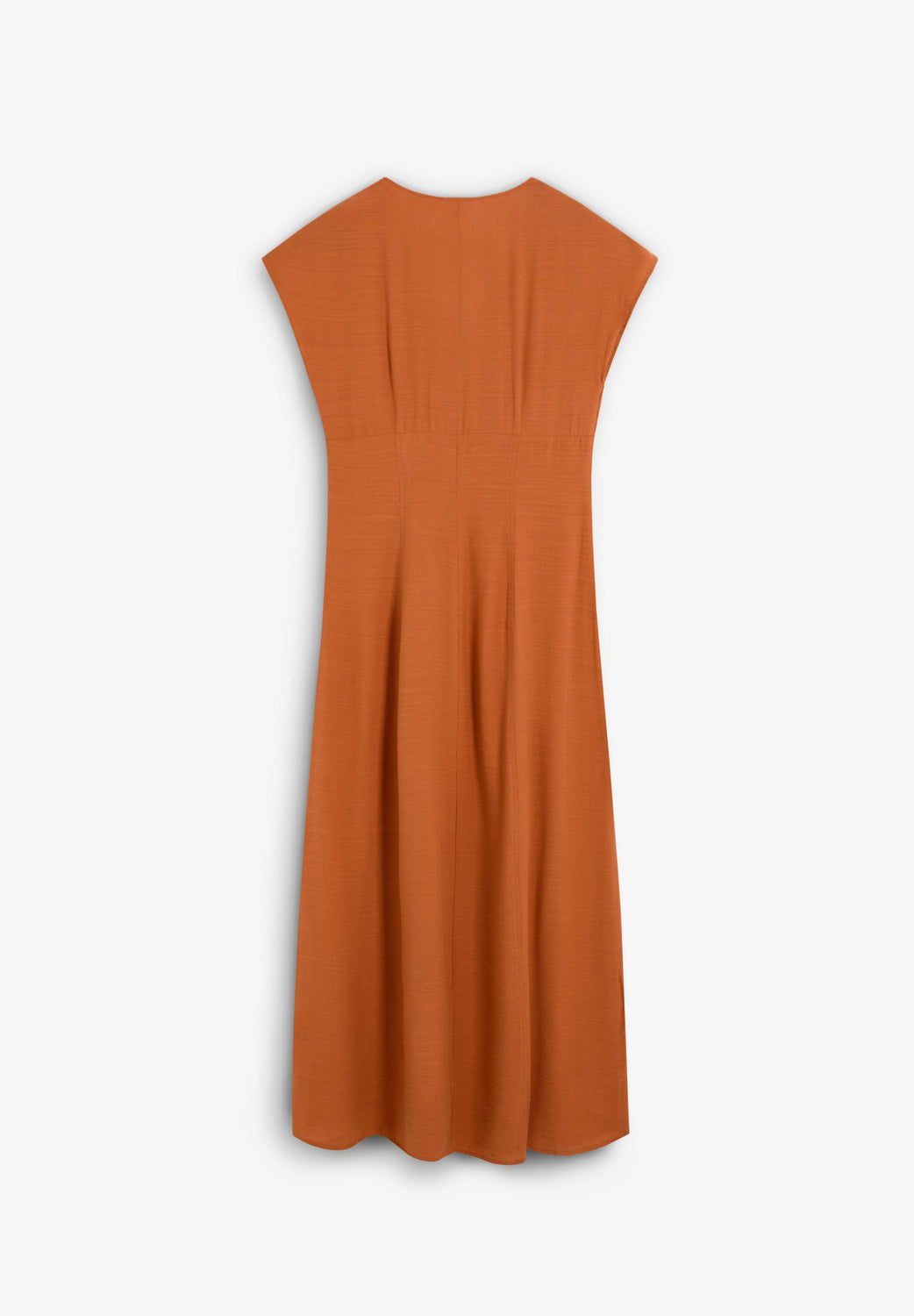 Bustier dress made of slightly stretchy cotton. Slim fit, V-neck. Pleated detail on the chest. Short sleeve. Midi length. Concealed side zip fastening.