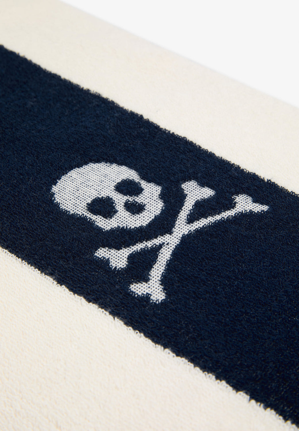 Beach towel with stripe print. Contrast embroidered skull.