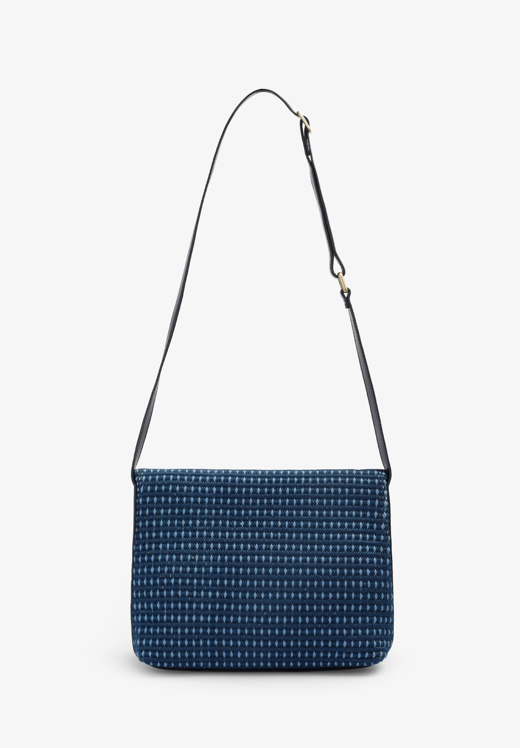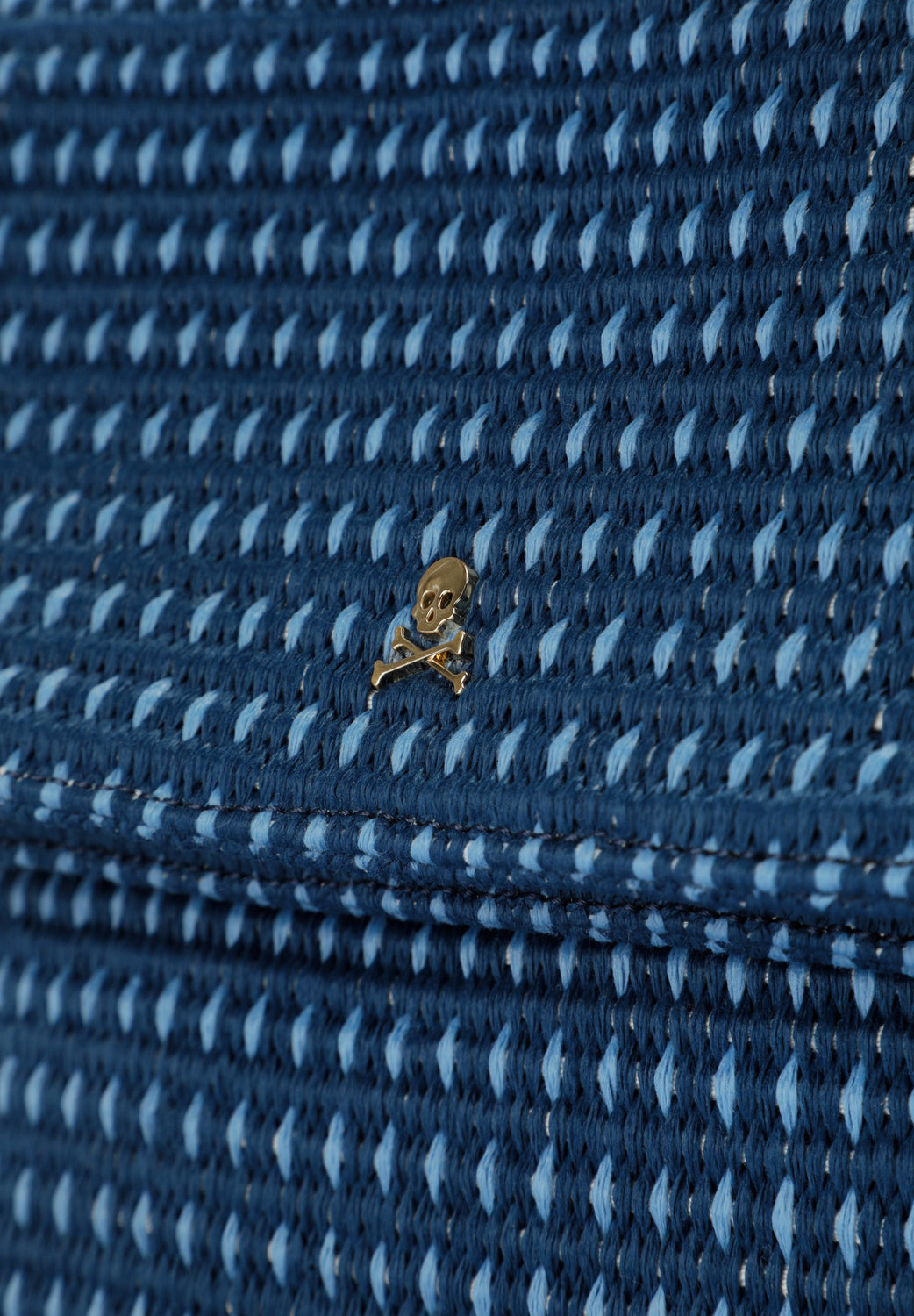 Clutch bag made of braided fabric. Lined. Includes adjustable strap. Metal skull detail.