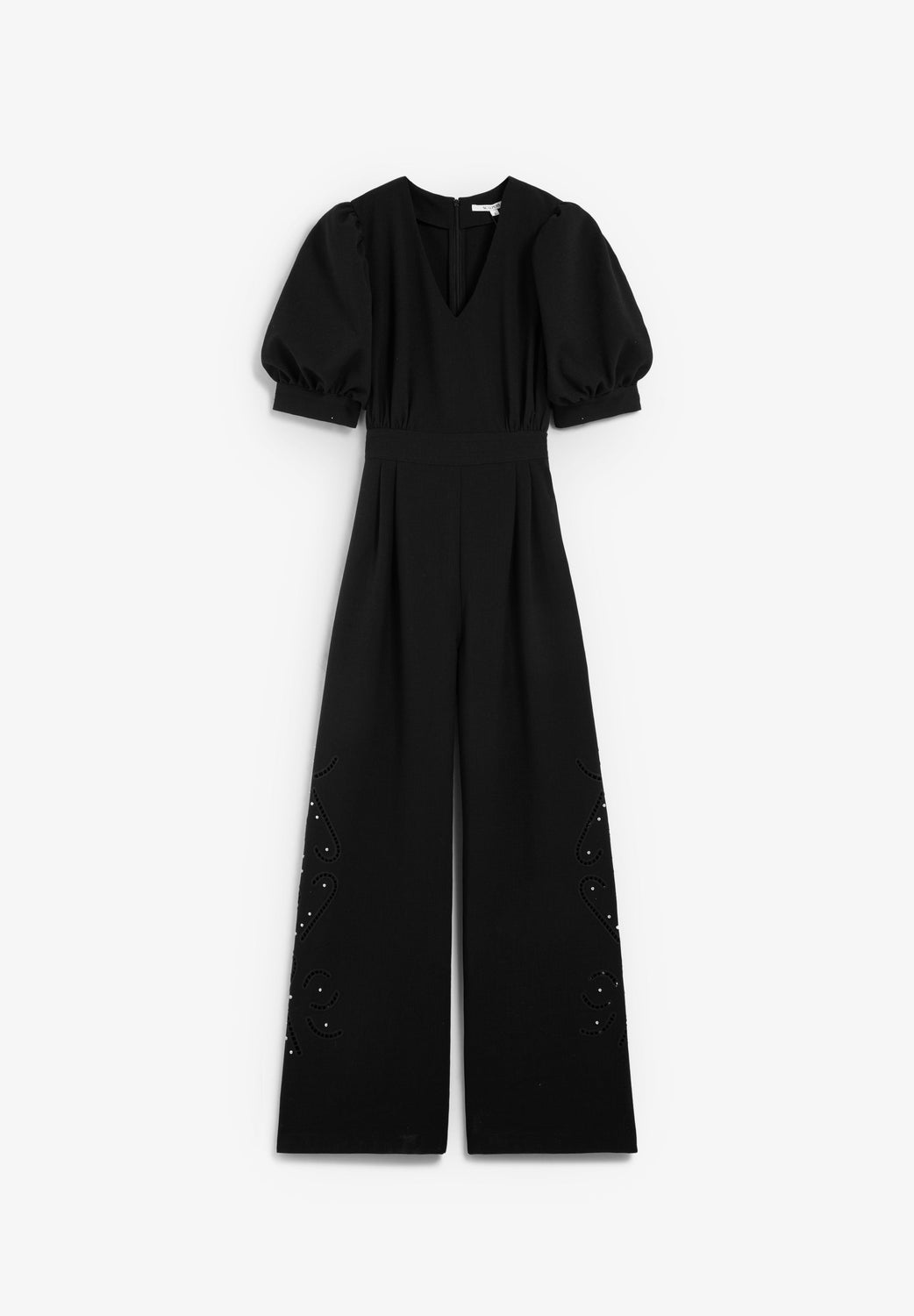 PUFF SLEEVE JUMPSUIT WITH STUDS