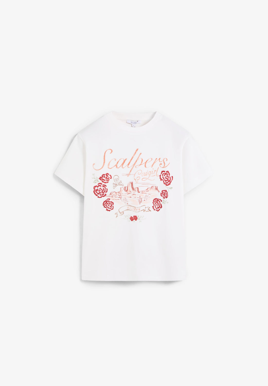 T-shirt made of 100% cotton. Round neck and short sleeves. Front print with glitter details.