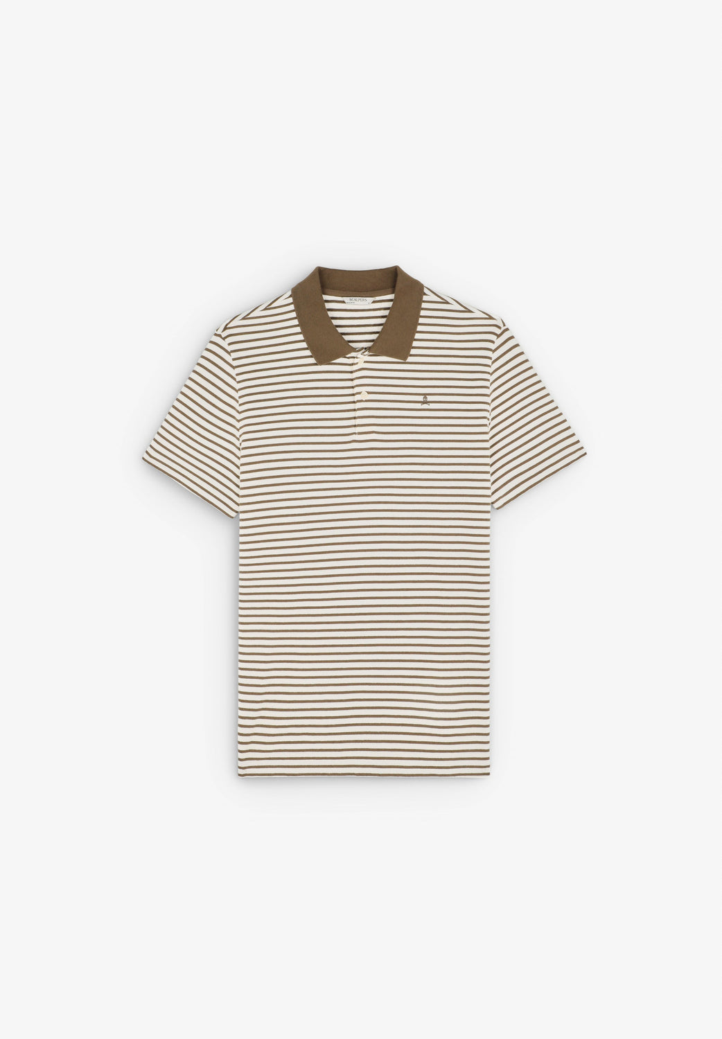 Striped polo shirt. Regular fit. Contrasting collar. Short sleeve. Button fastening. Contrast embroidered skull detail on the chest.