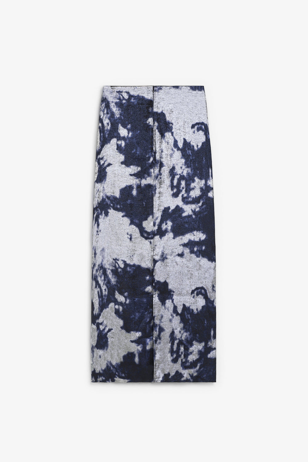 Flowing fabric skirt with tie-dye print and metallic details. Slim fit. Midi. Back vent. Concealed side zip fastening.