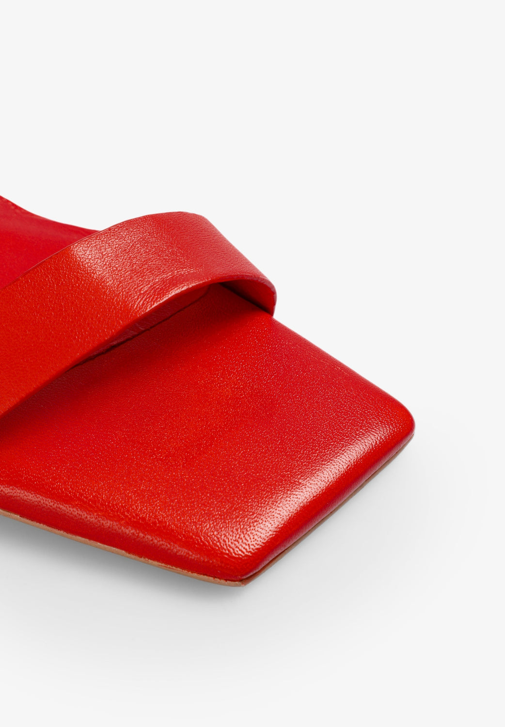 Heeled sandals made of leather. Front strap. Ankle strap with buckle fastening. Slim heel.