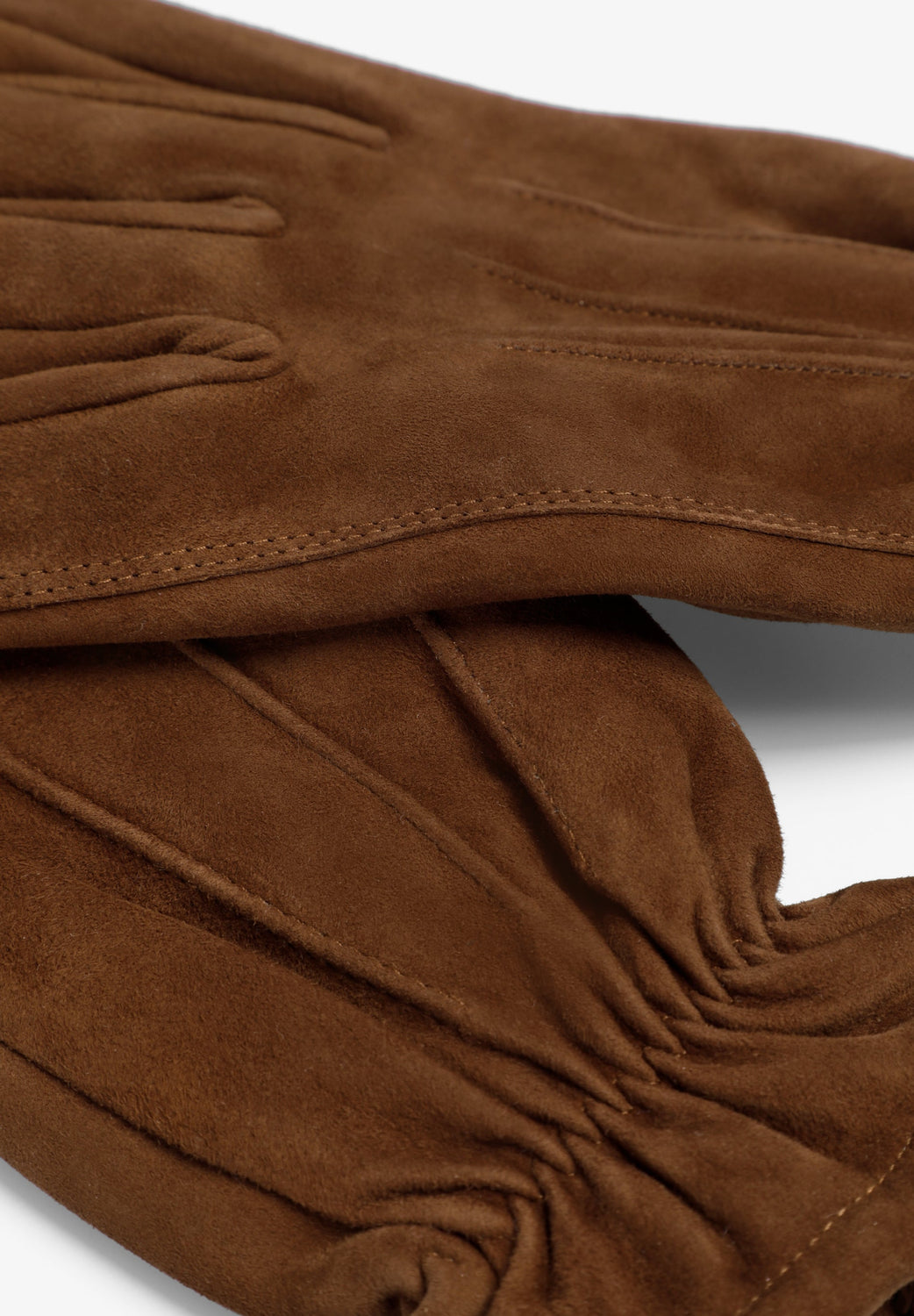 Gloves made of 100% goatskin with suede finish. Lined. Fitted at wrists.