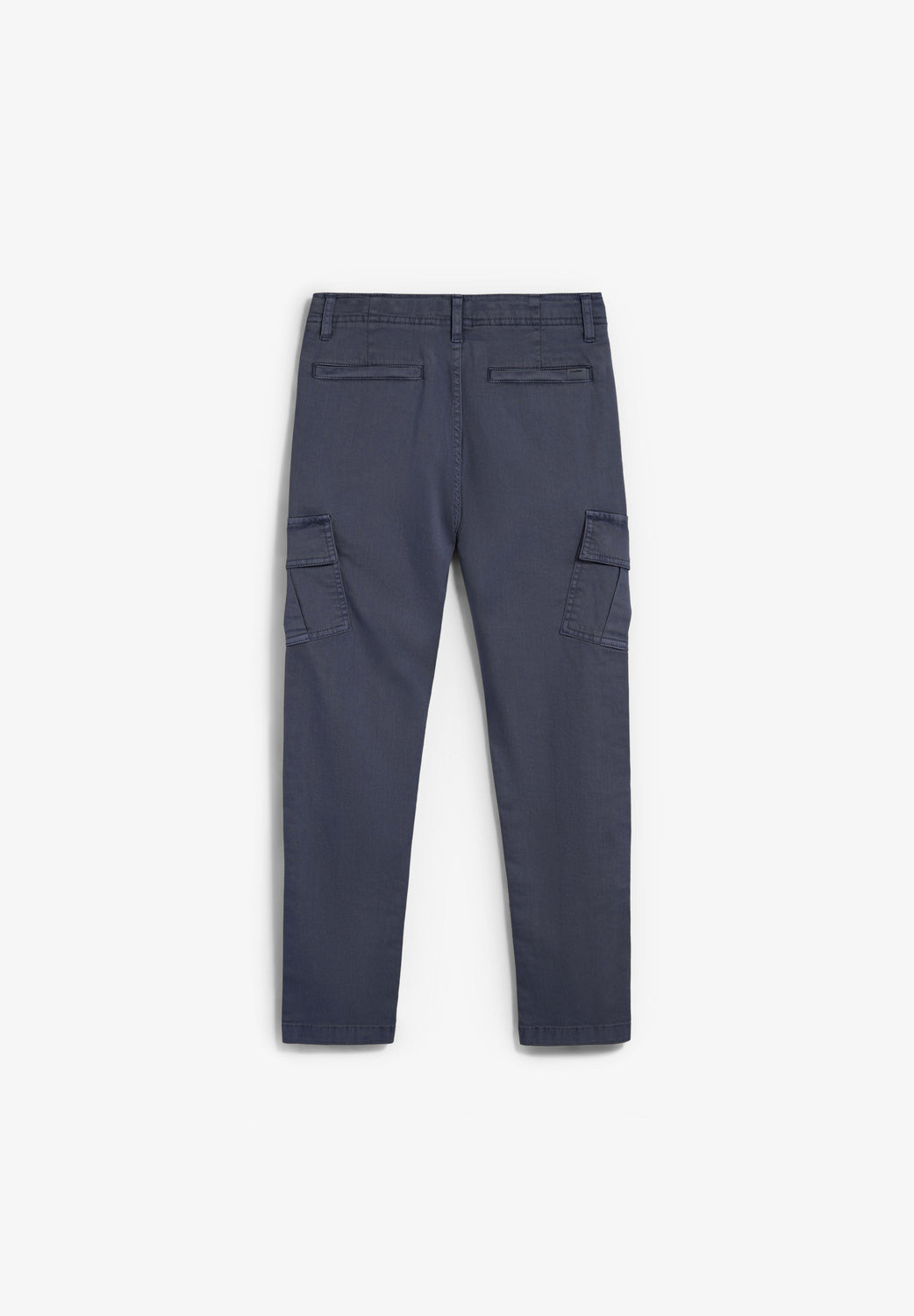 Cargo trousers made of slightly stretch BCI cotton. Regular fit, top button and zip fastening and side pockets. Belt loops at the waist and flap pockets on the leg.