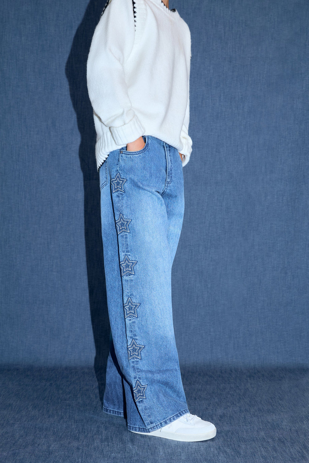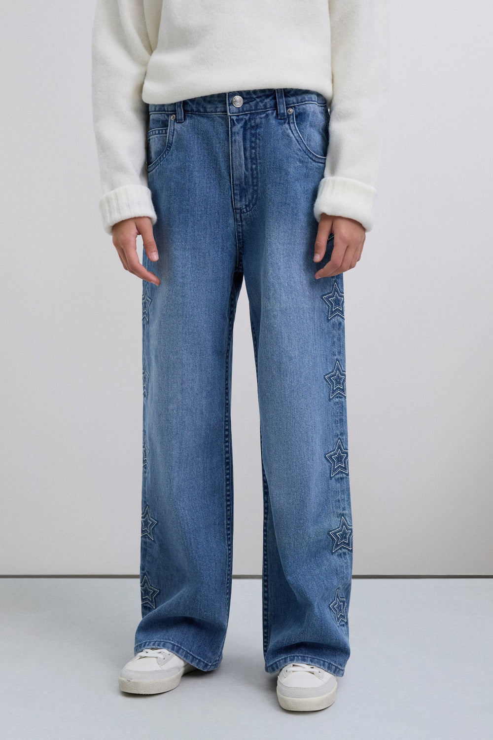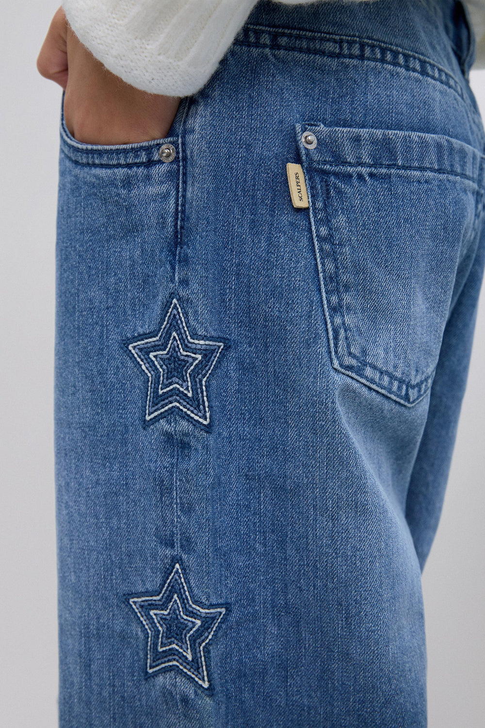 WIDE LEG TROUSERS WITH EMBROIDERED STARS