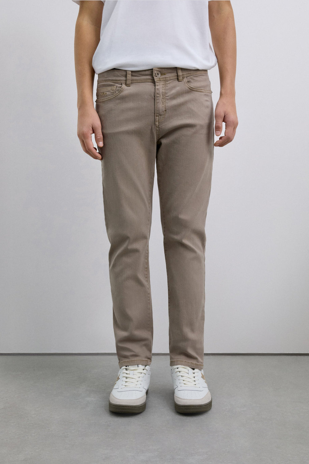 Pantalón confeccionado en Algodón Orgánico BCI. Cierre mediante botón en frontal. Bolsillos delanteros y en espalda.
