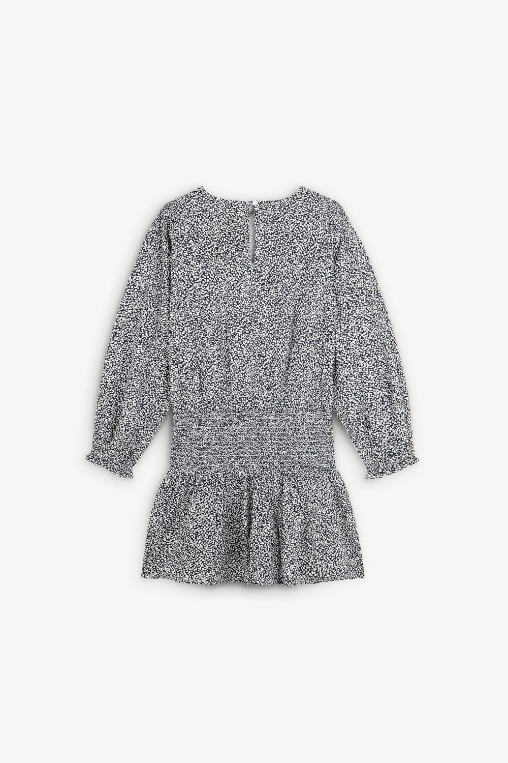 Vestido mini. Regular fit. Cuello redondo. Mangas largas ligeramente abullonadas y terminadas en frunce. Detalle nido de abeja y calavera en cintura. Cierre trasero con botón.