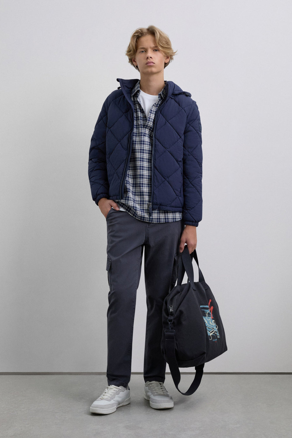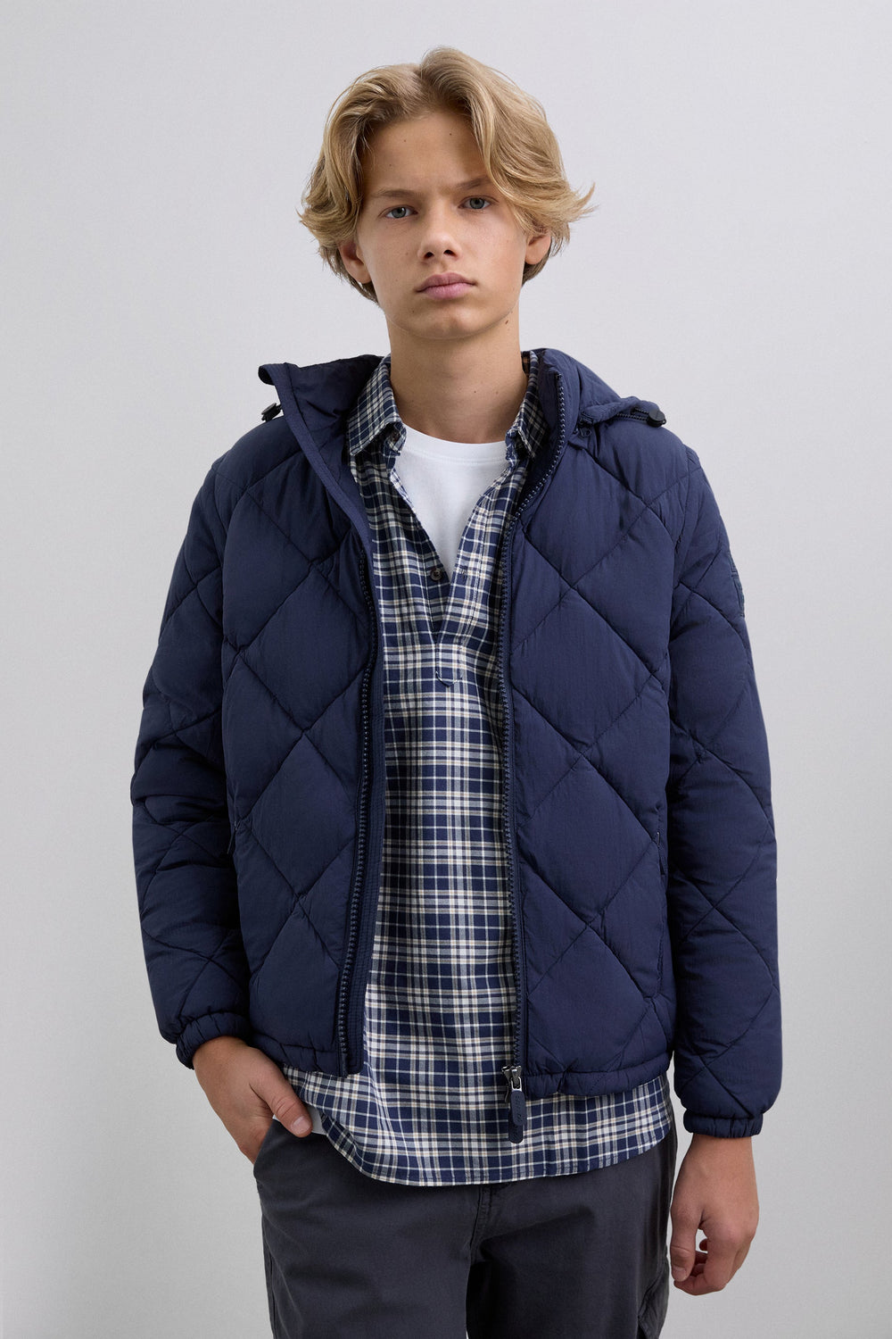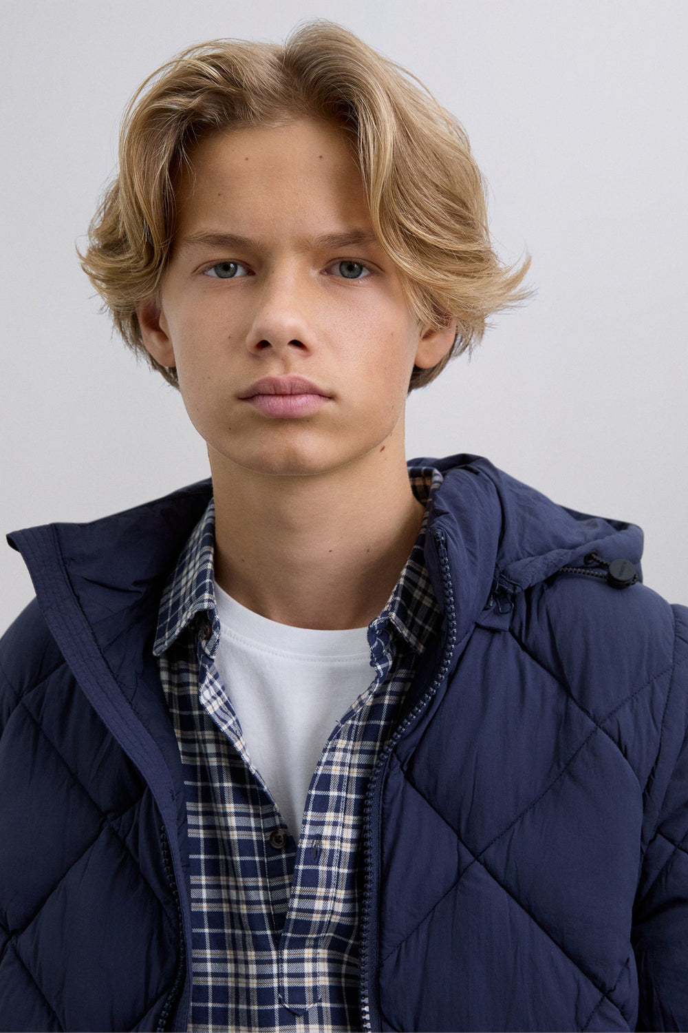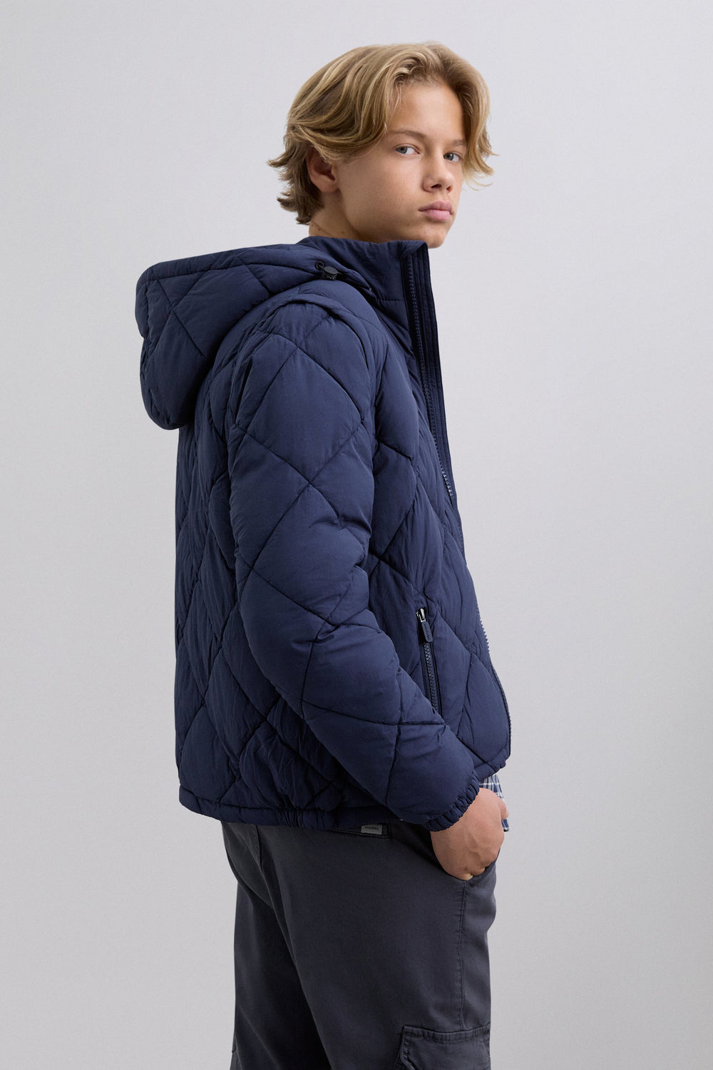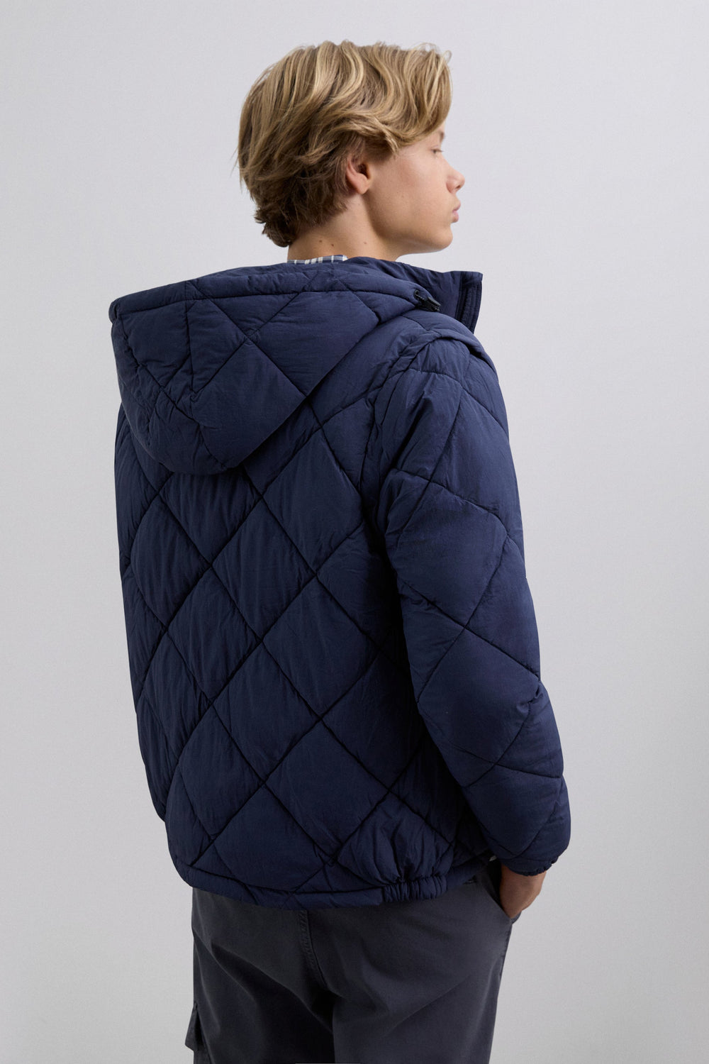 Jacket with hood and detachable long sleeves. Zip closure. Rubberised logo on sleeve. Front pocket. Logo detail at the neck.