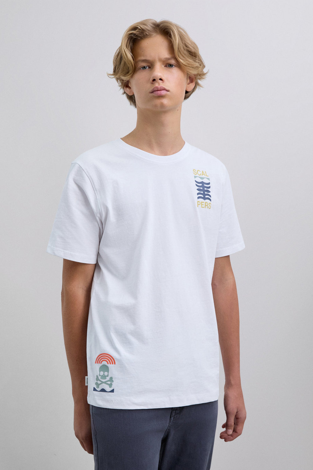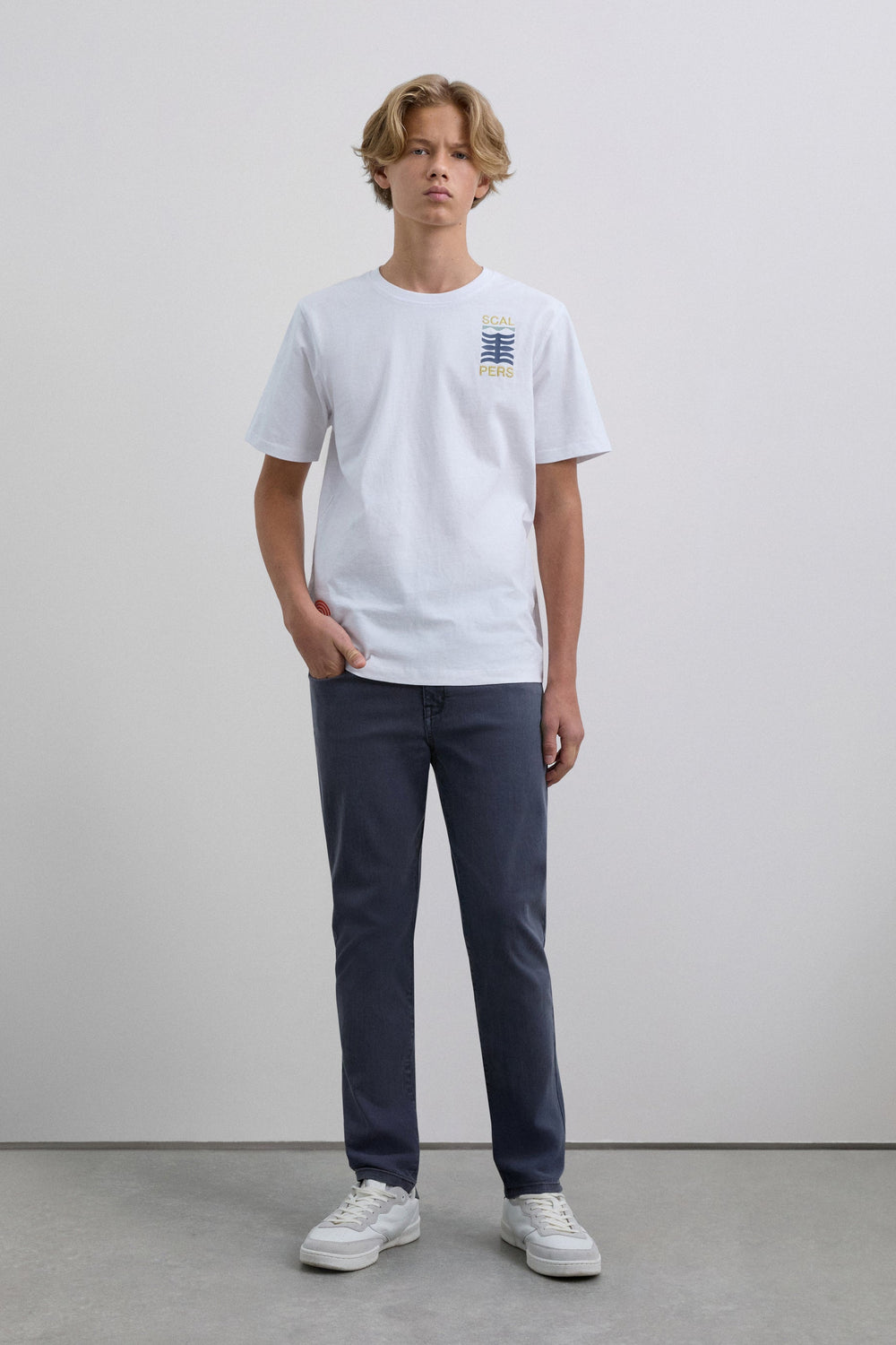 T-shirt made of 100% BCI cotton. Regular fit, short sleeves and round neck. Contrast print on front and bottom right side with embroidered logo.