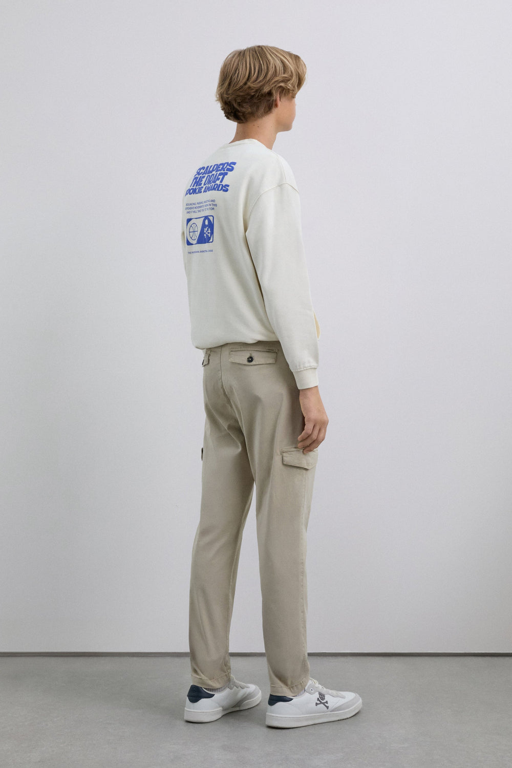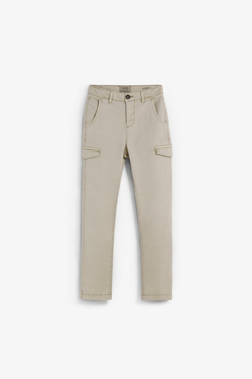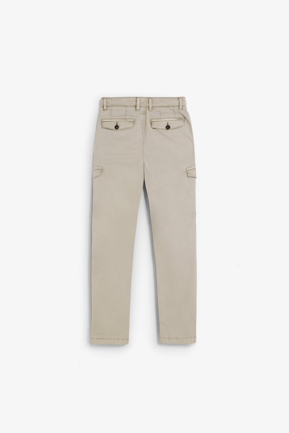 Cargo trousers made of slightly stretch BCI cotton. Regular fit. Button and zip fastening. Front and back pockets. Belt loops at the waist and flap pockets on the leg.