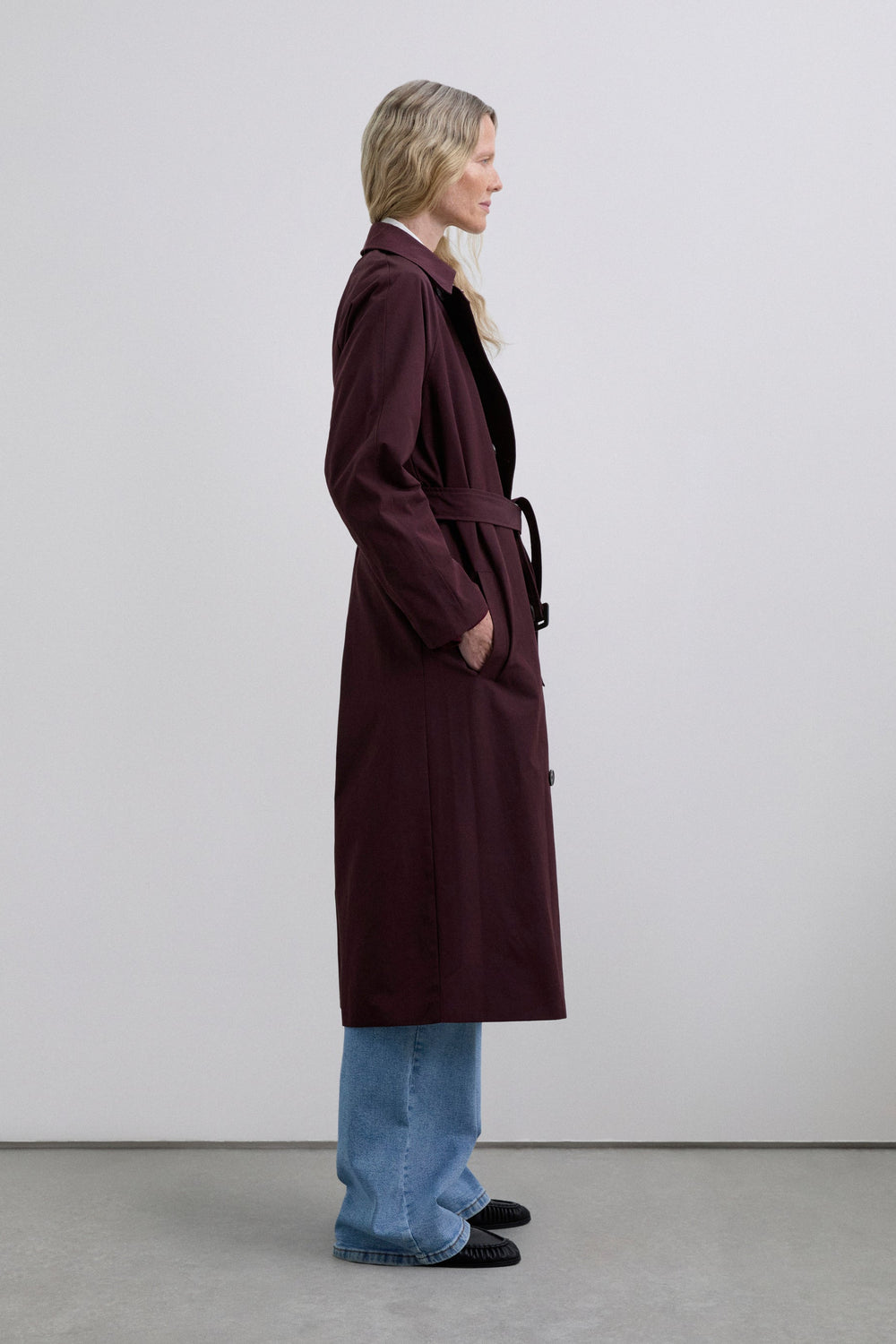 Waterproof trench coat. Slightly oversize. Collar with button fastening and front fastening with buttons and belt. Long sleeves. Detachable puffer vest.