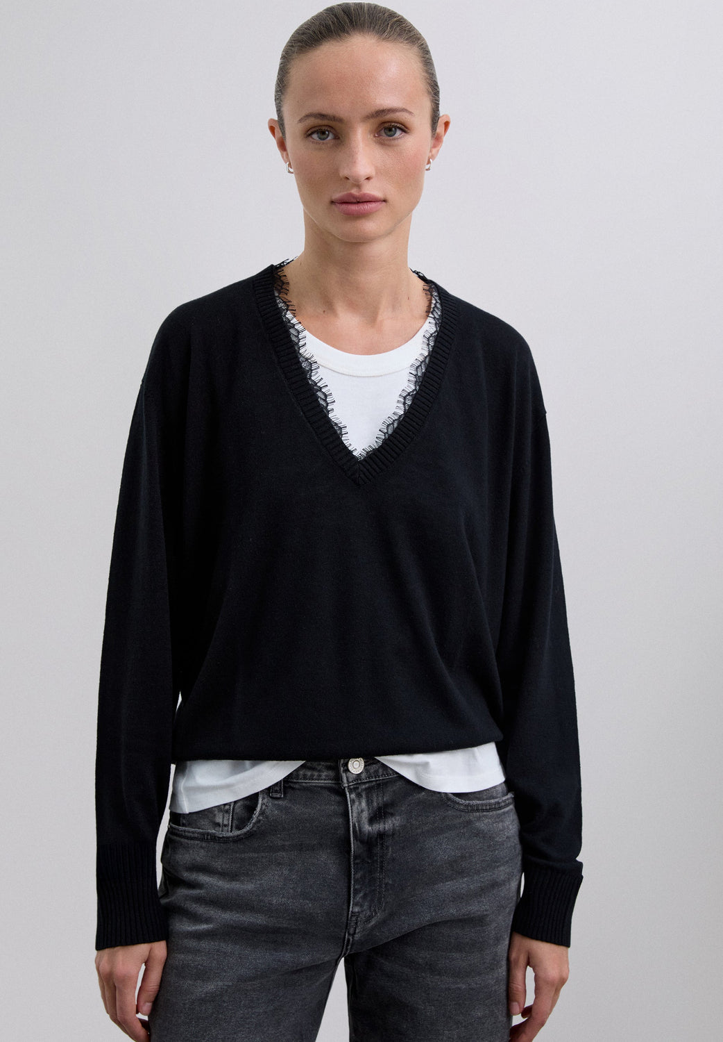 V-NECK SWEATER WITH LACE