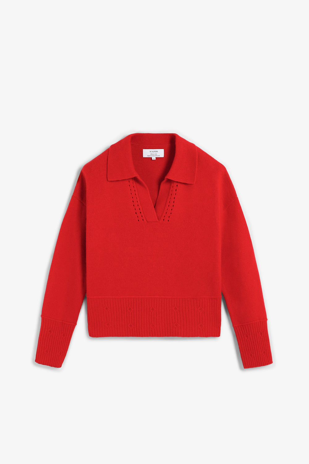 Polo shirt-style sweater made of a wool and cashmere blend. Polo shirt-style collar with cutout detailing. Regular fit. Long sleeves with ribbed cuffs. Ribbed hem with embossed detailing.