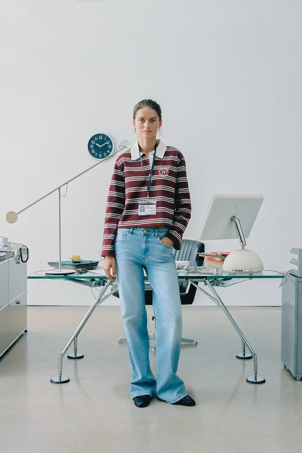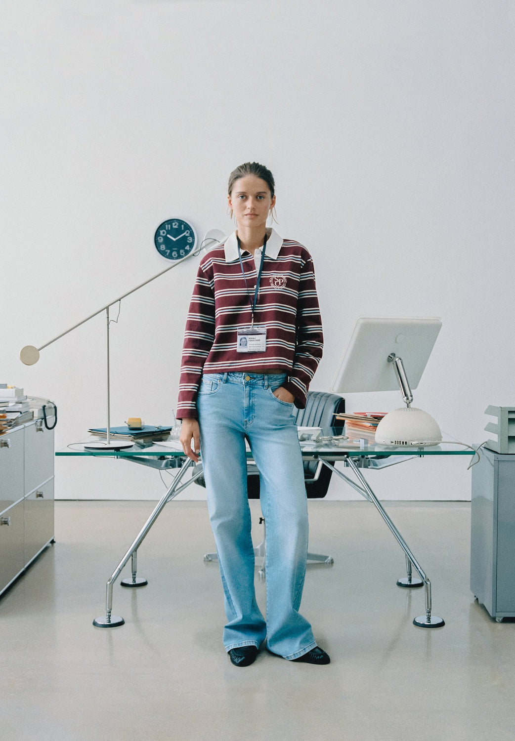 Mid-rise jeans with belt loops. Full length, front zip and button fastening. Back and front pockets.