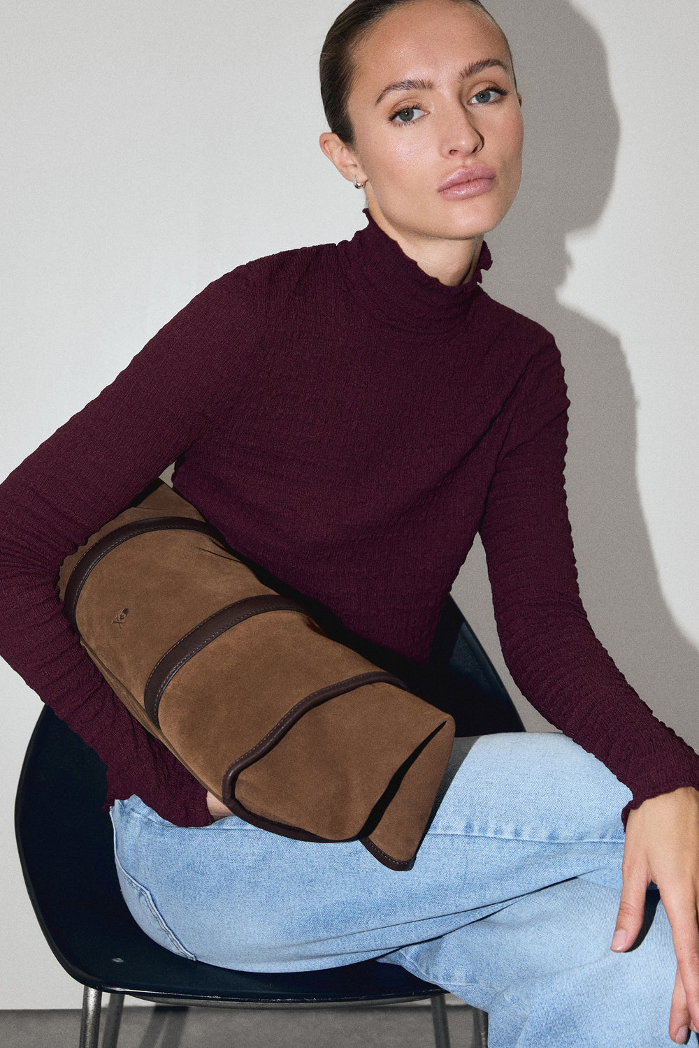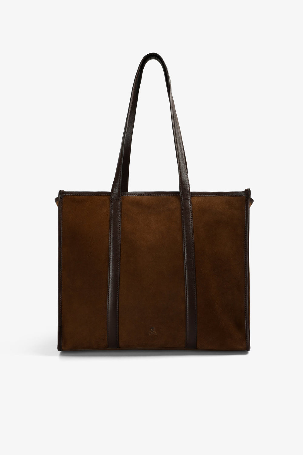 Tote bag made from 100% suede. Contrast leather details. Zip fastening.