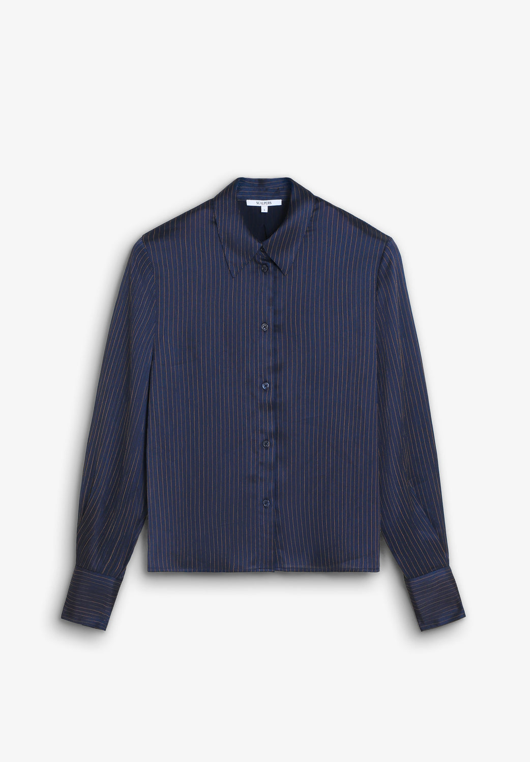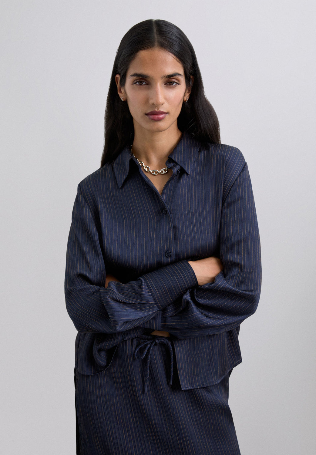 Shirt with stripe print. Long sleeves. Button fastening at front and cuffs.