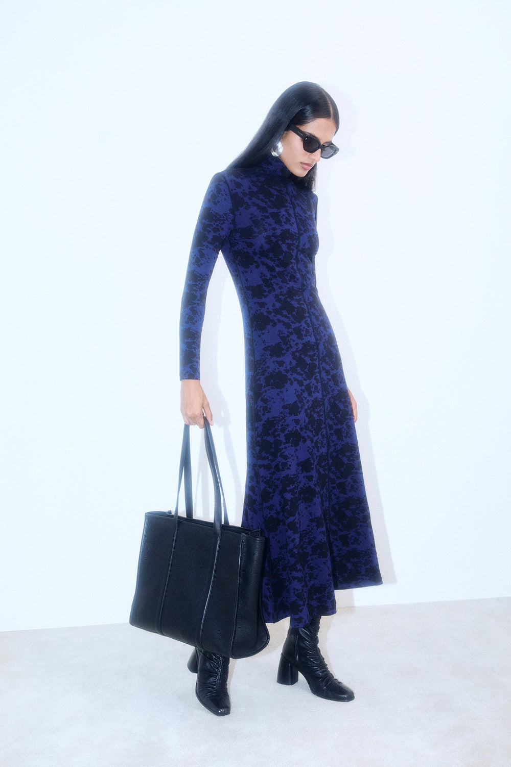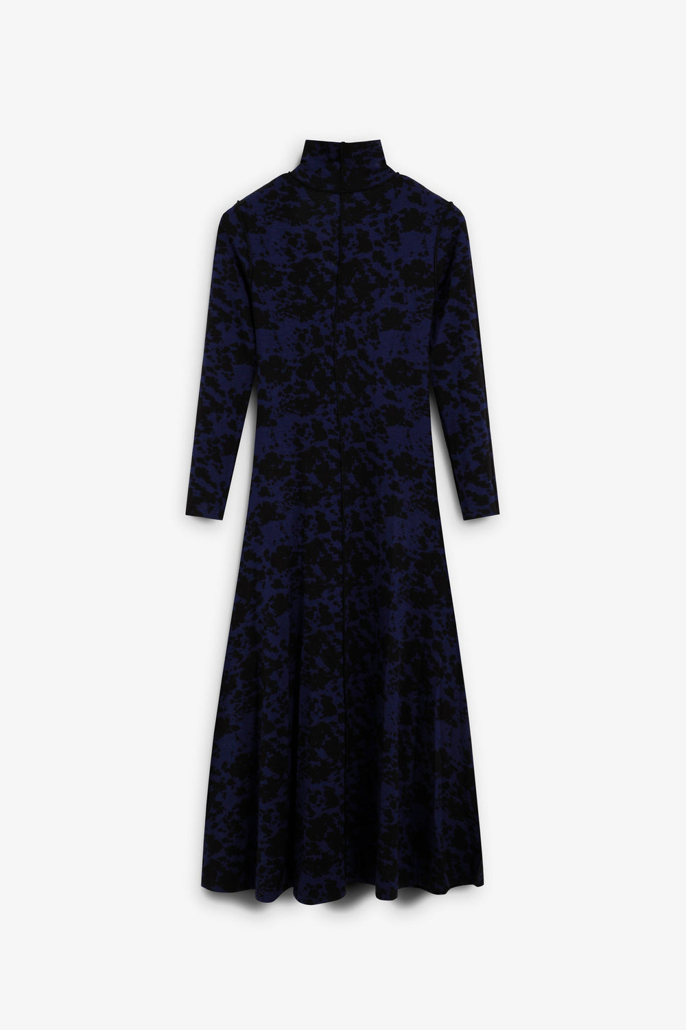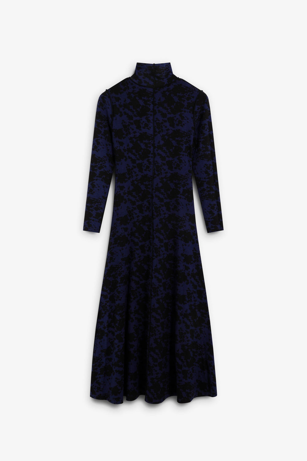 Midi dress. Long sleeves. Animal print. High neck. Seams detail.