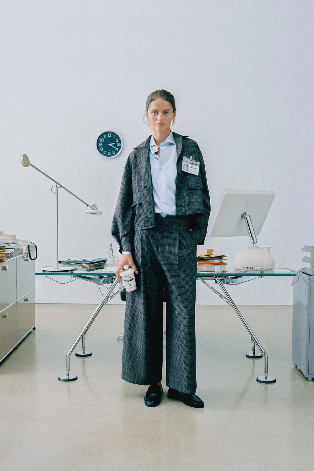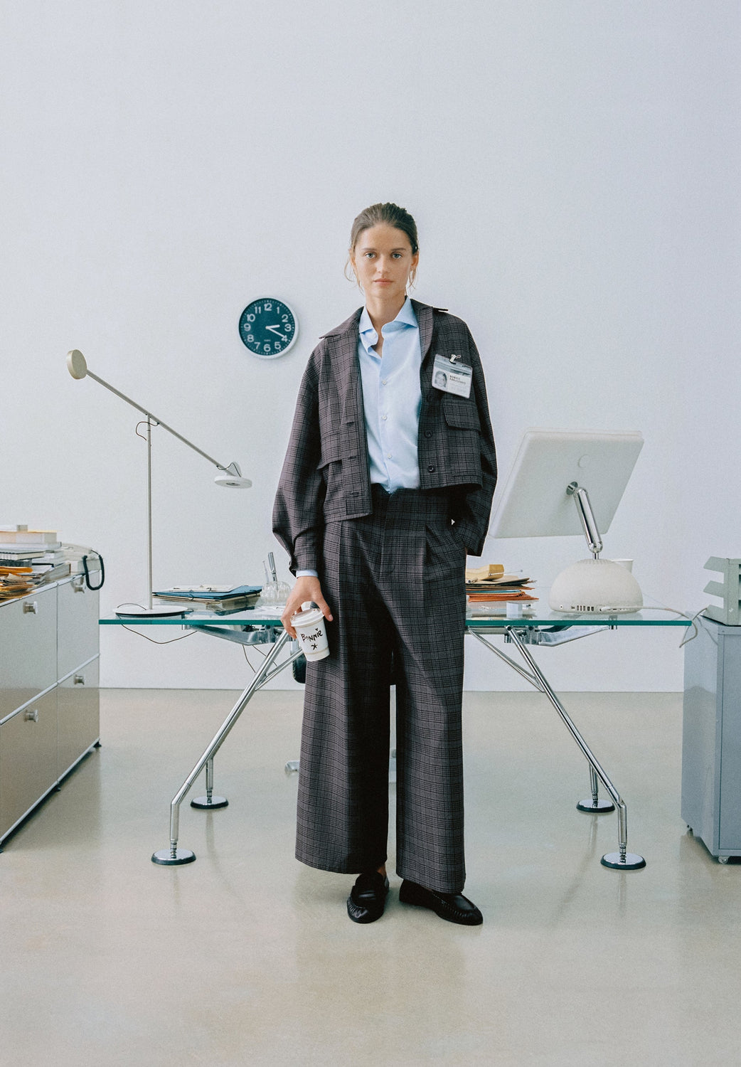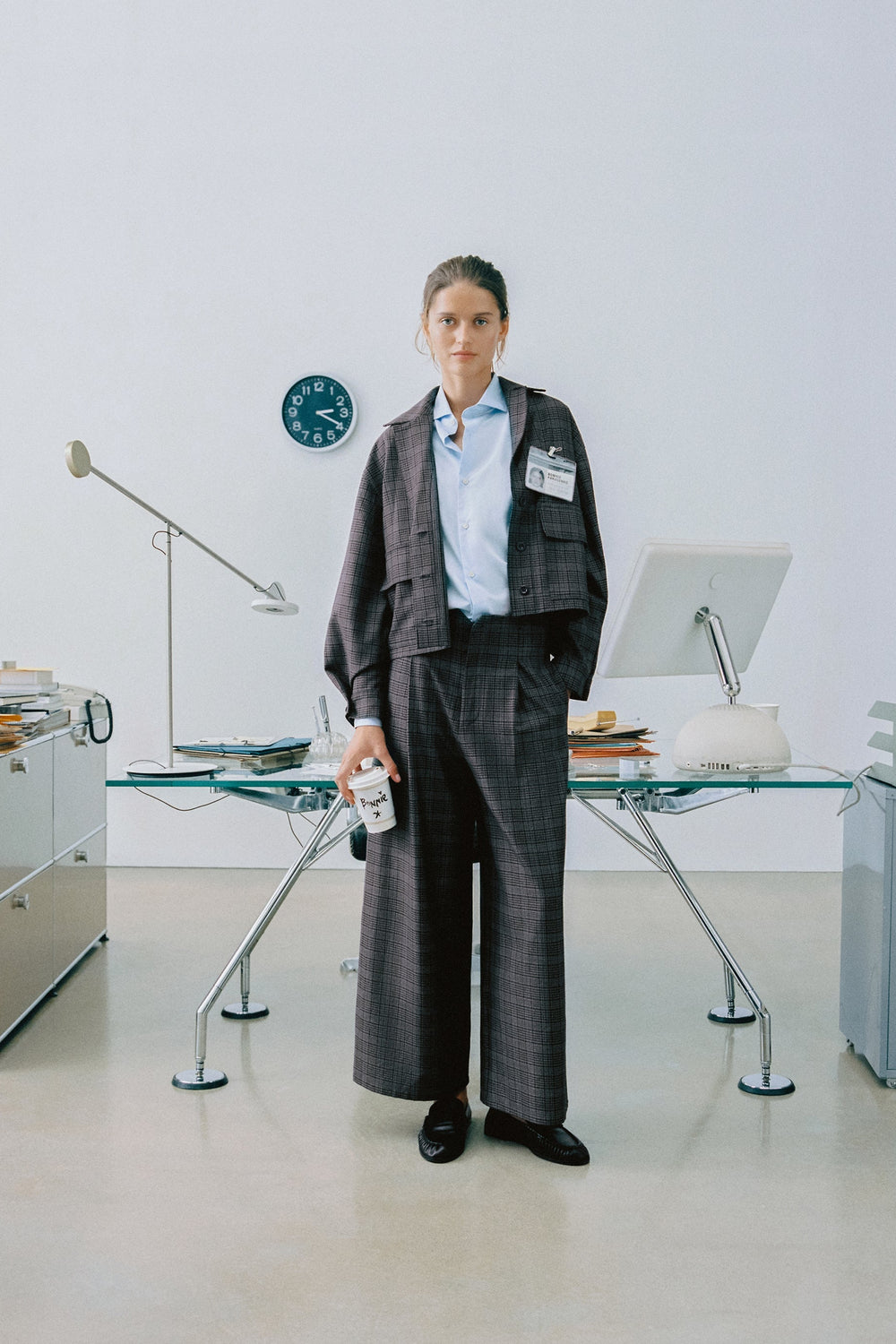 Culotte cut trousers. Pleat detail on the front. Concealed zip and button fastening. Check print.