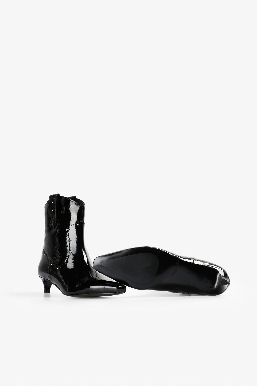 Boots made of 100% leather. Stud details. Kitten Heel. Pointed finish.