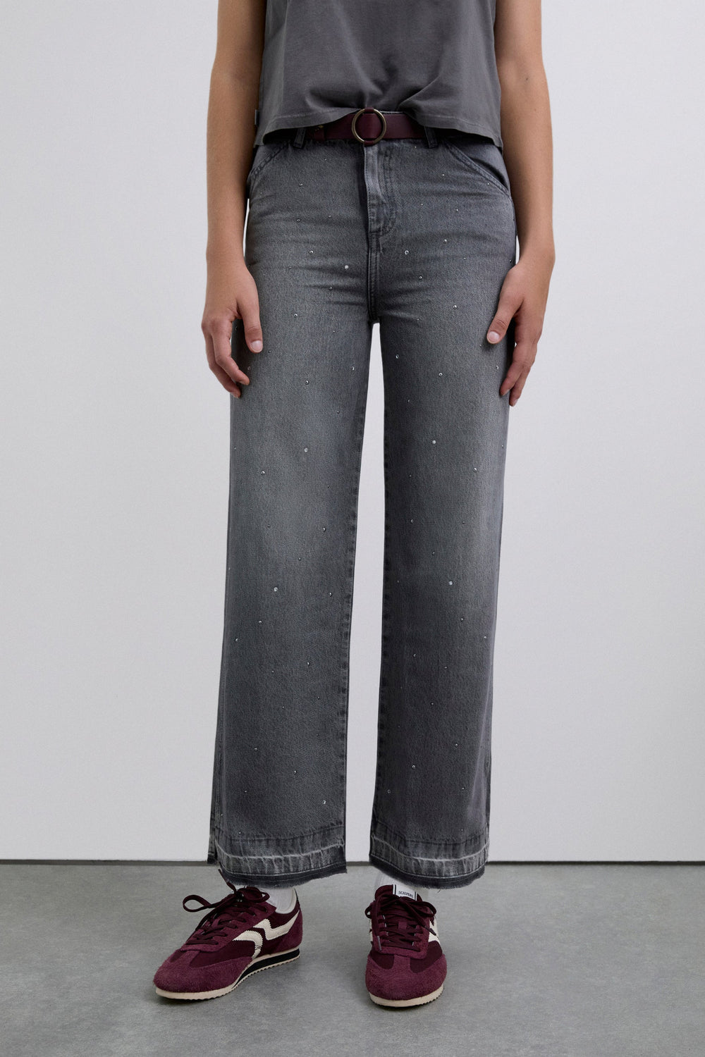Trousers made of 100% BCI cotton. Studded detailing. Two front pockets and back pockets. Stitched hems.