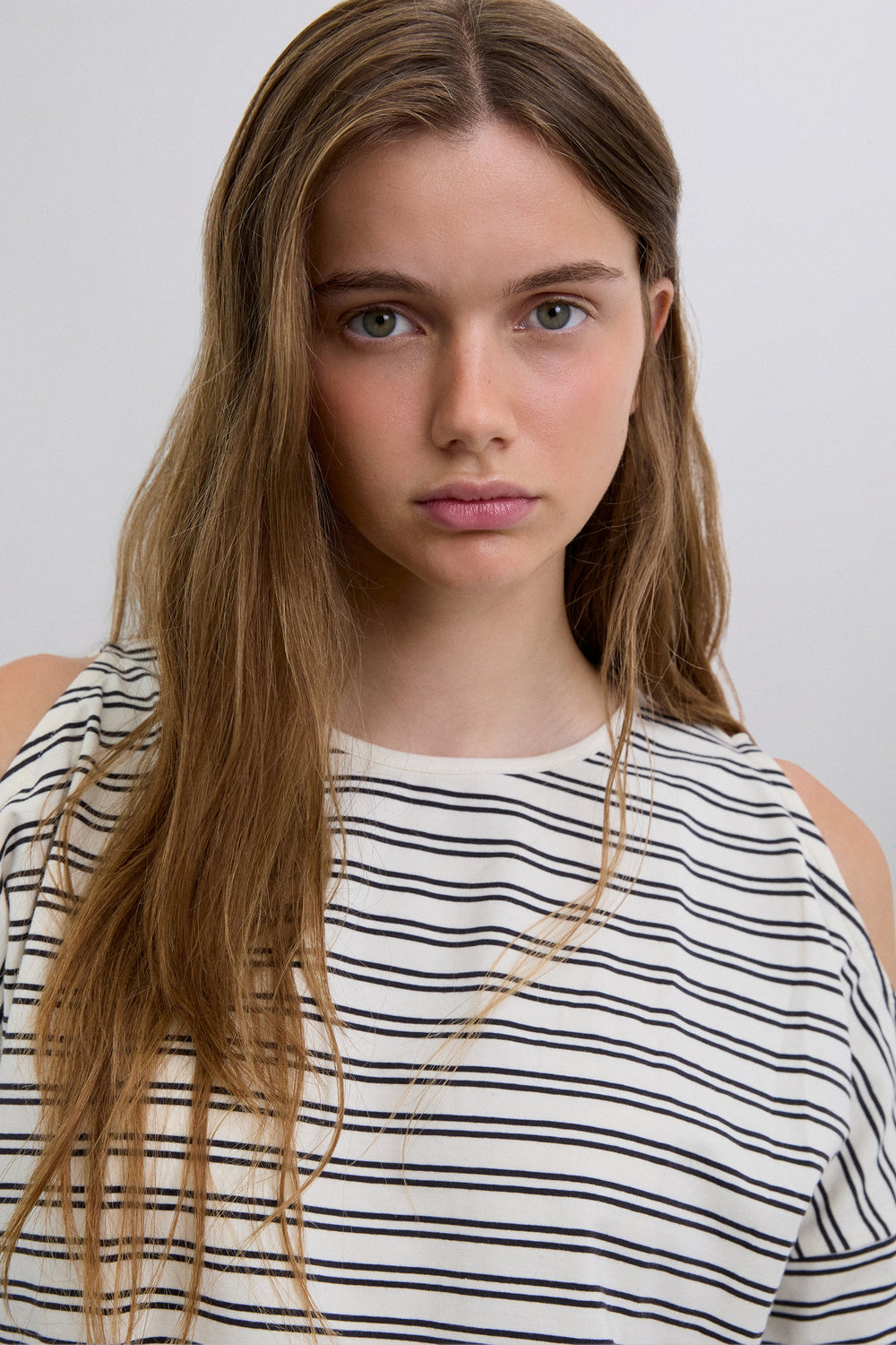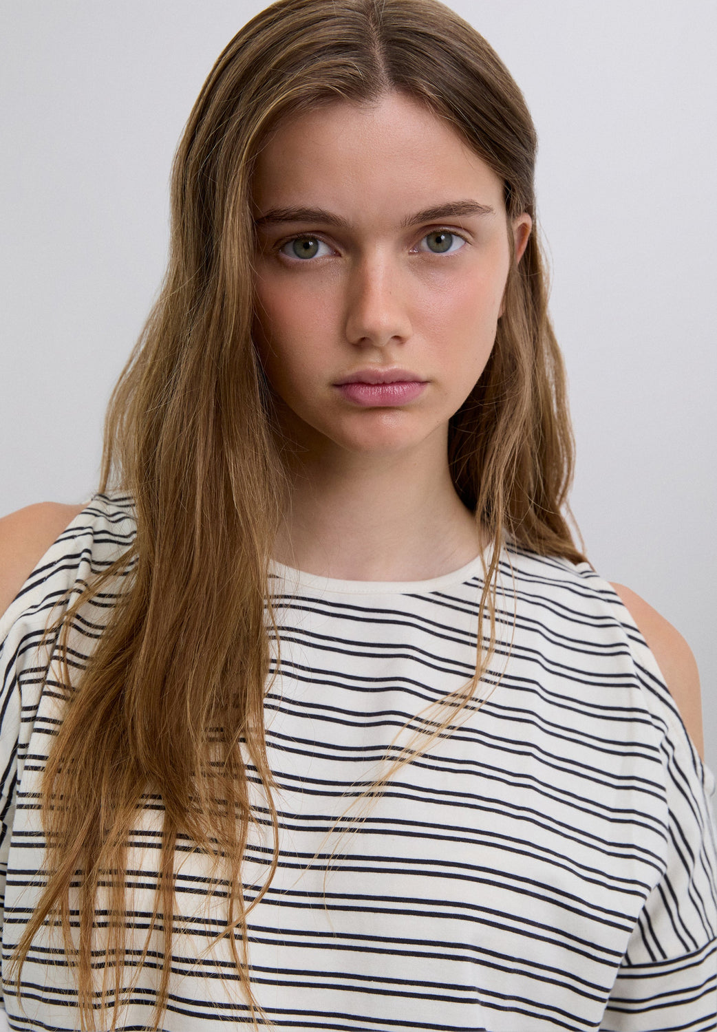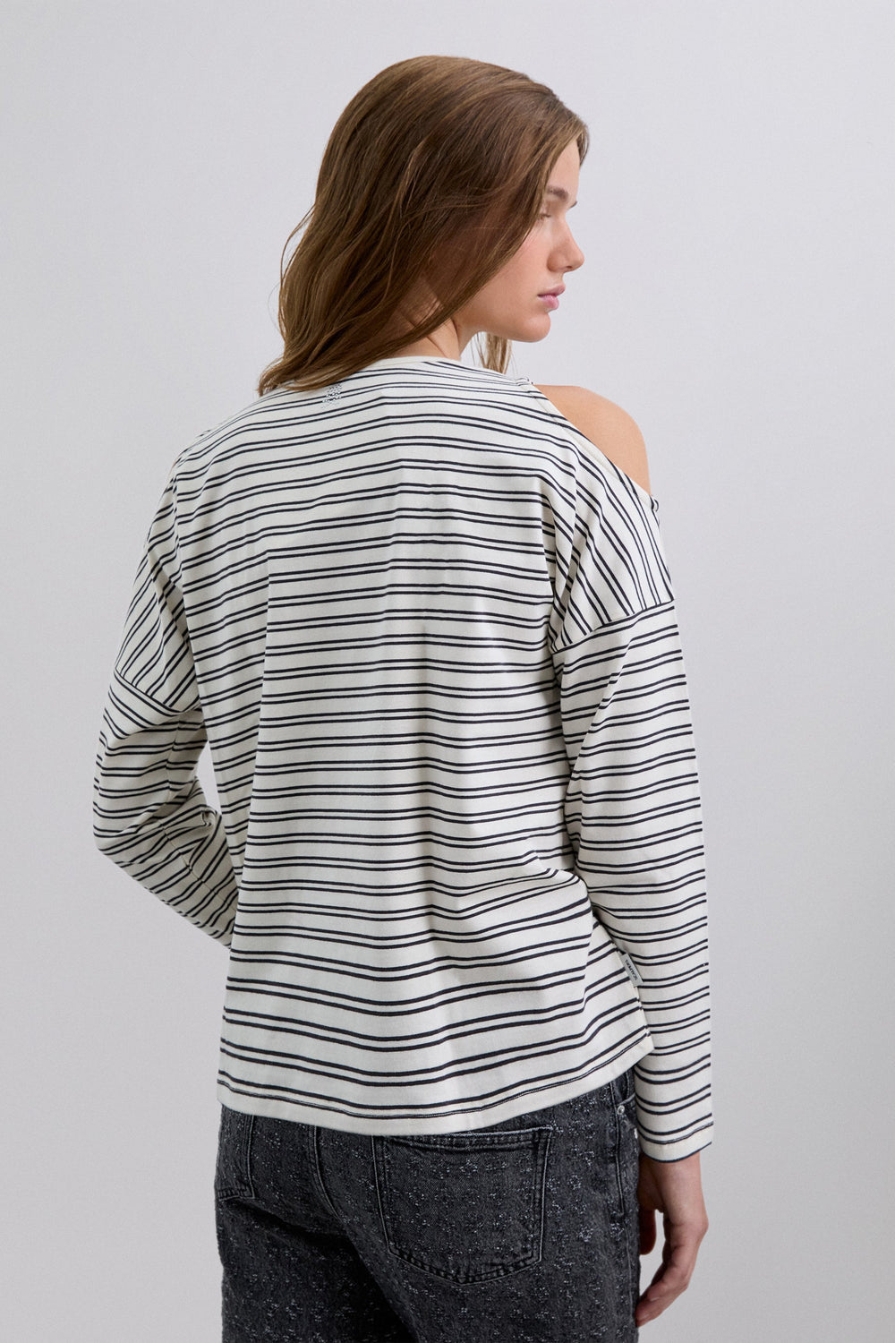 T-shirt made of BCI cotton. Regular Fit. Stripe print. Round neck. Long sleeve with opening at the shoulders. Studded skull detail on the back.