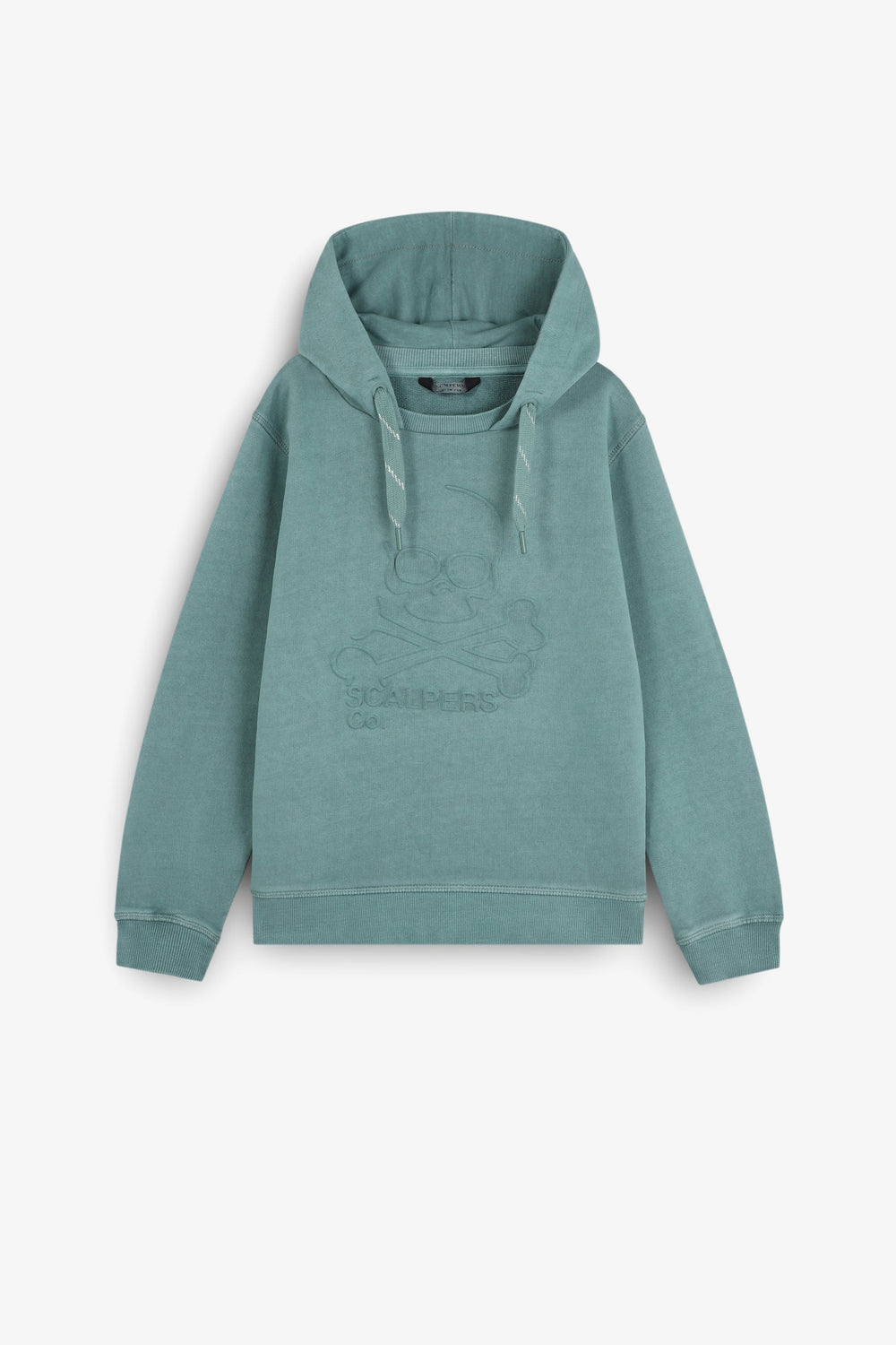 Sudadera con capucha ajustable confeccionada en 100% algodón BCI. Corte regular fit. Manga larga y cuello redondo. Print calavera frontal a tono. Acabados en rib.