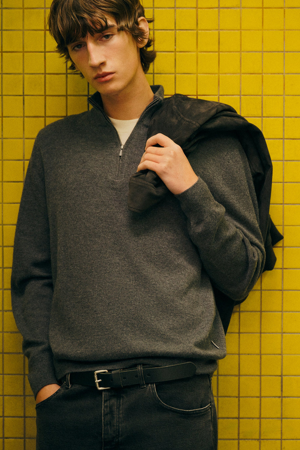Sweater made of 100% wool. Regular Fit. Collar with half zip fastening. Long sleeves. Matching embroidered skull detail on the chest. Ribbed trim.