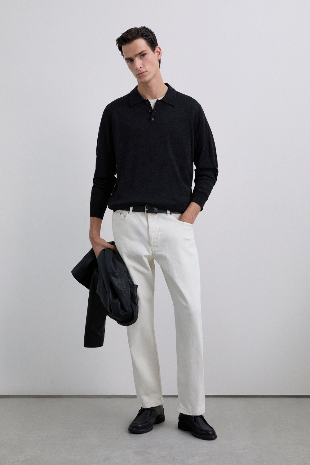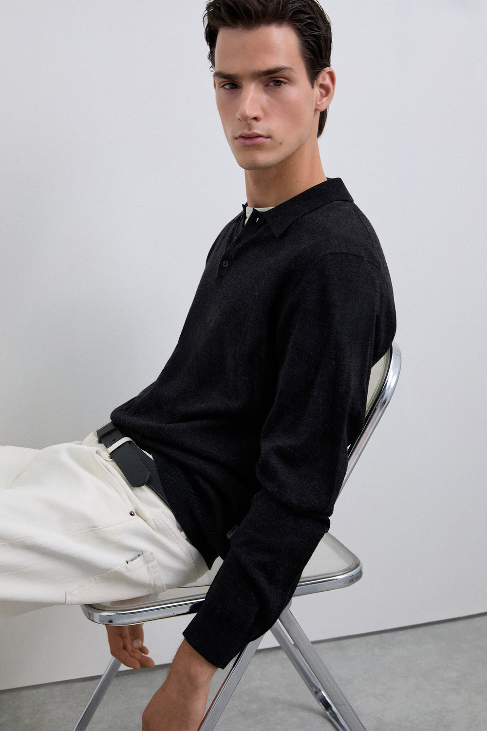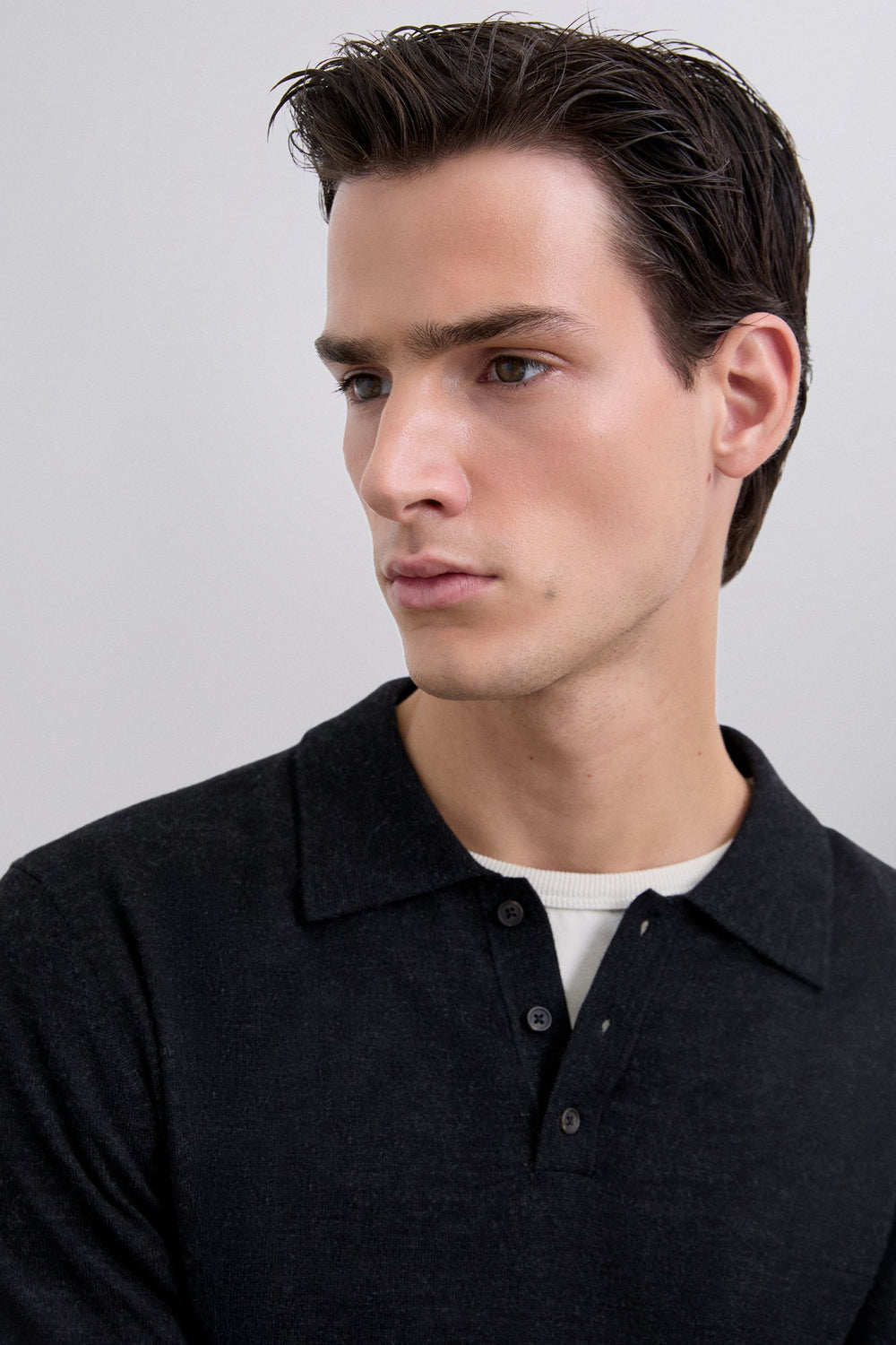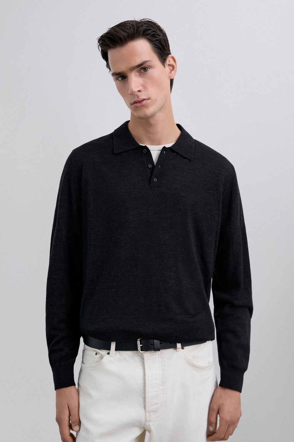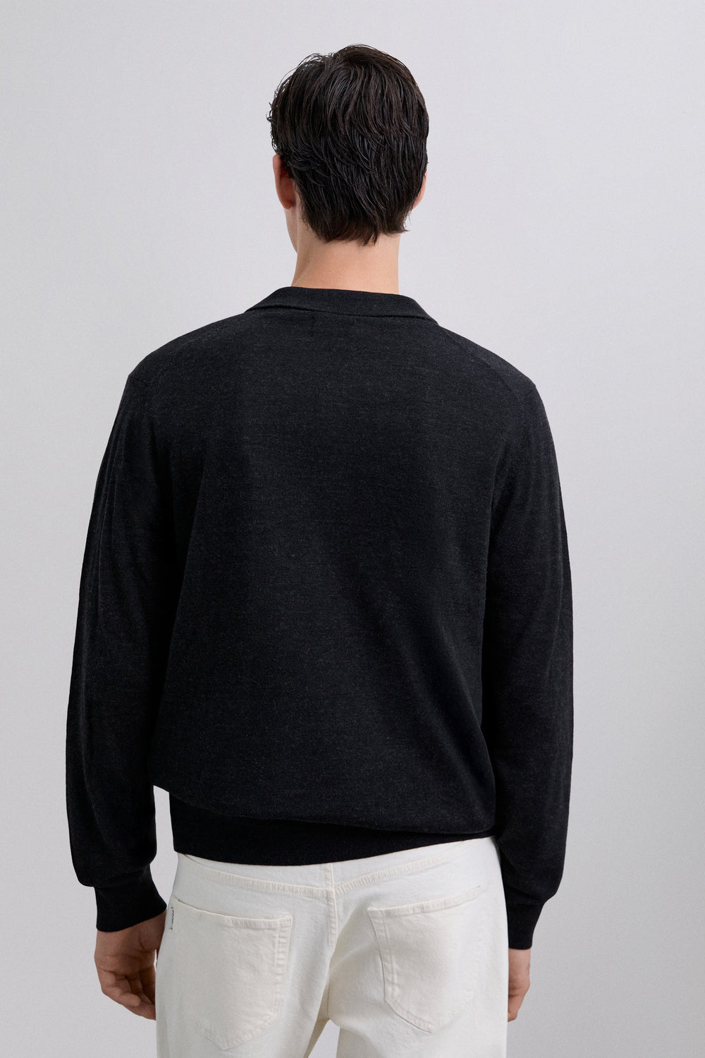 Sweater made of 100% wool. Long sleeves. Polo shirt collar. Button fastening.