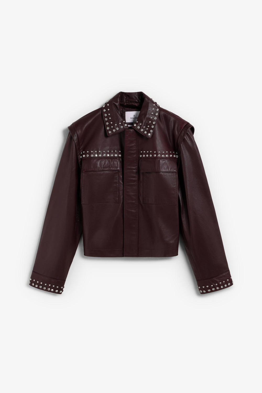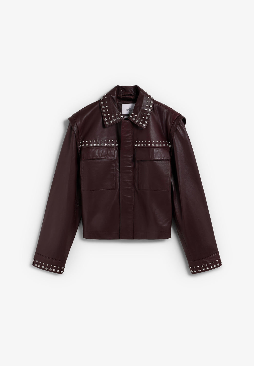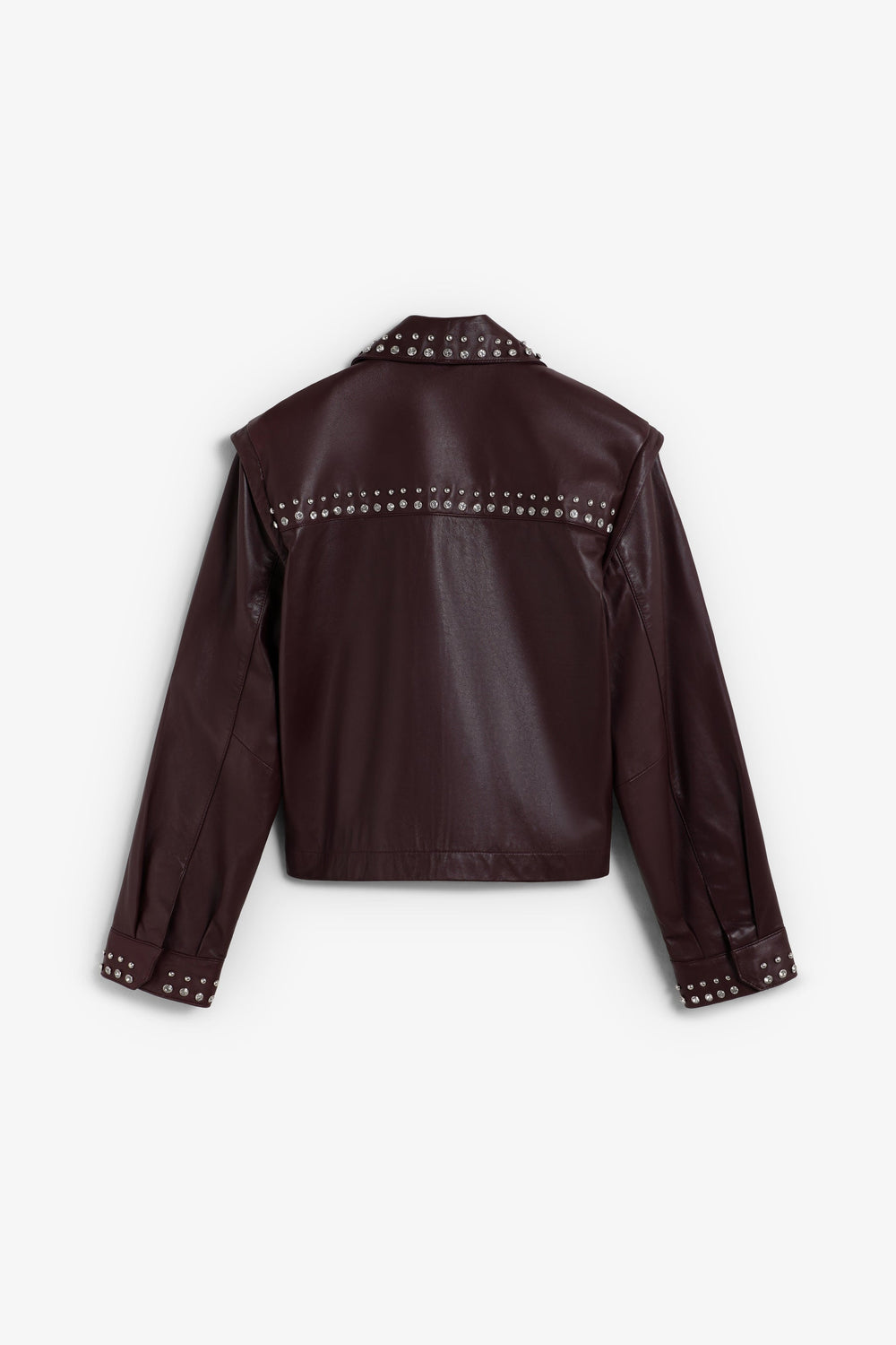 BURGUNDY LEATHER STUDDED JACKET