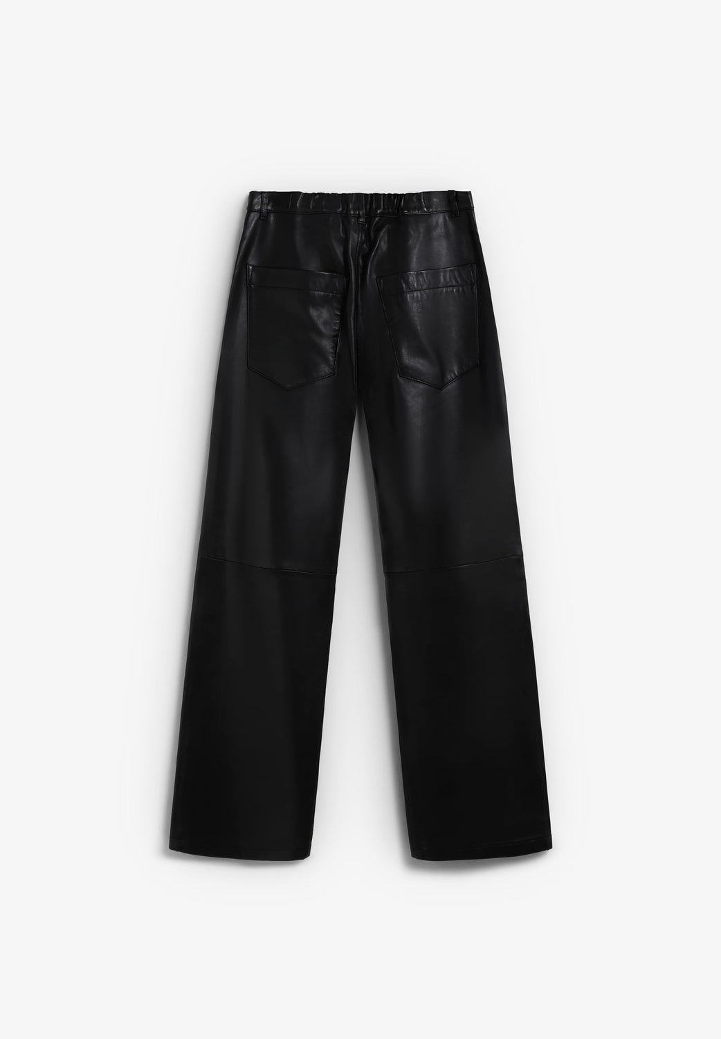 High-waist trousers made of 100% leather. Wide leg. Zip fastening and front and back pockets. Mid-leg seam detail.