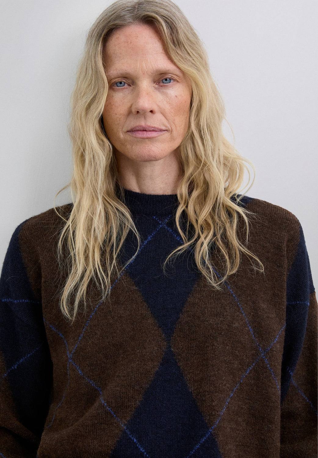 Sweater made of wool blend. Diamond pattern. Regular fit. Ribbed round neck. Long sleeves with ribbed cuffs.