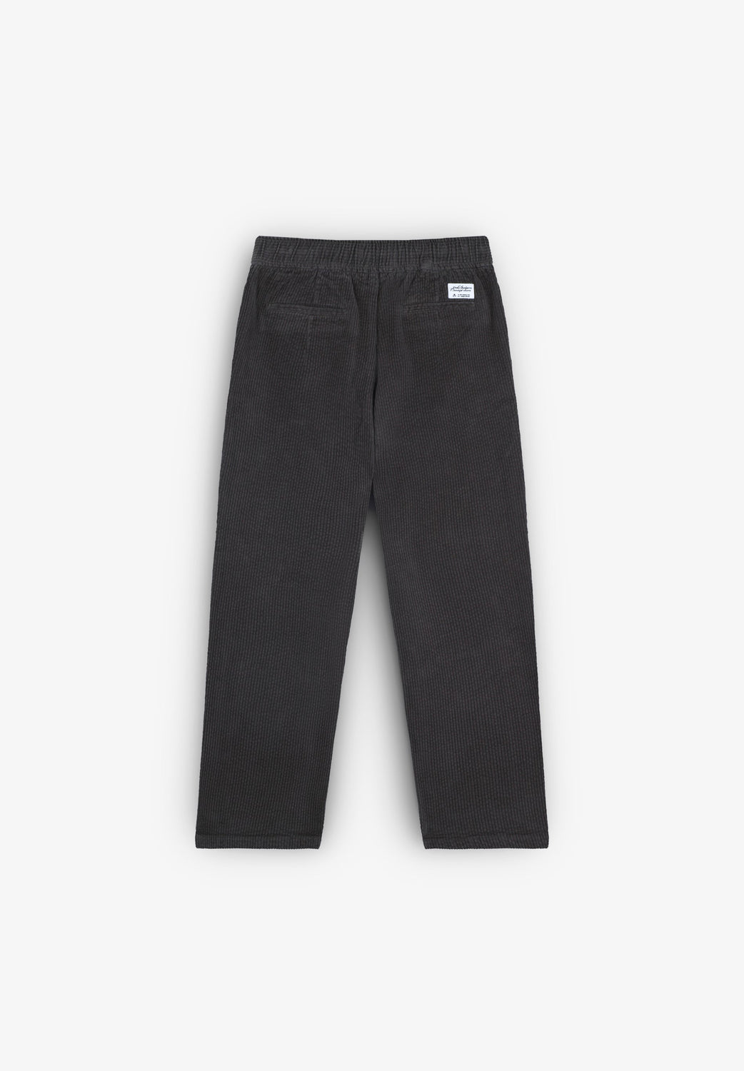 Straight corduroy trousers made of a slightly stretch cotton blend fabric Button closure. Front and back slanted pockets. Back label detail with logo.