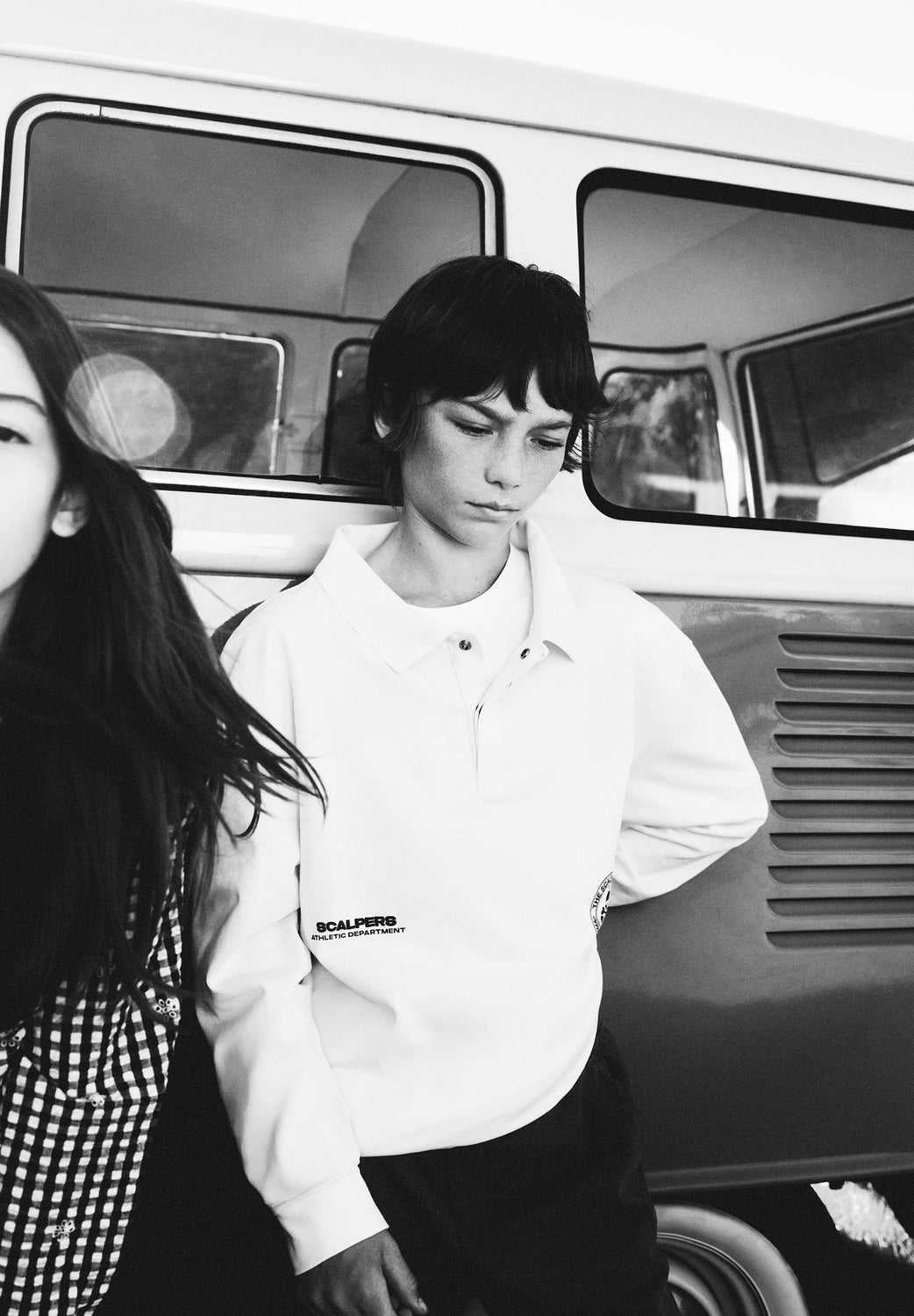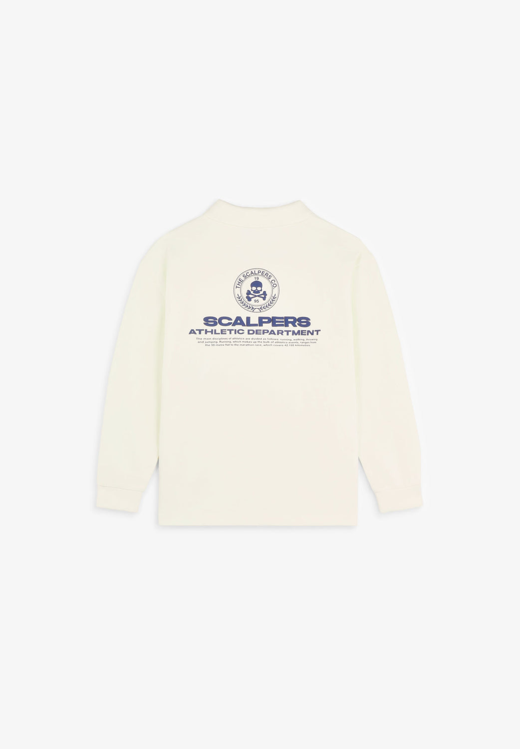 Polo shirt in 100% BCI cotton. Regular fit, classic buttoned collar and long sleeves. Front and back print with embossed logo and skull.