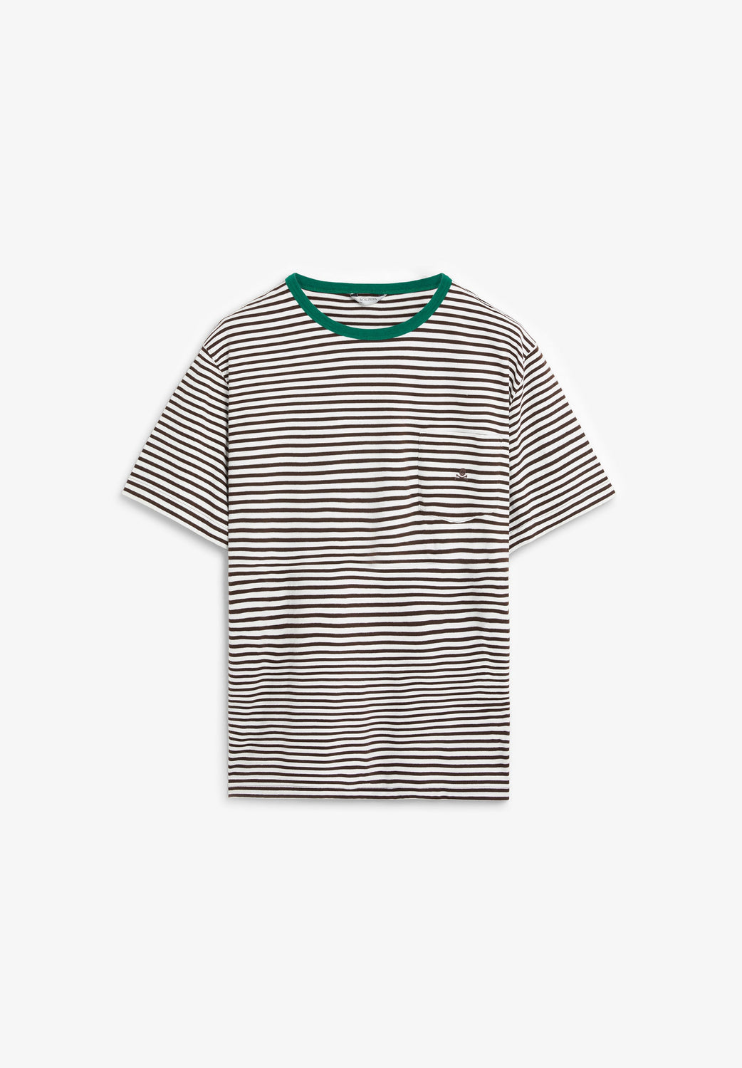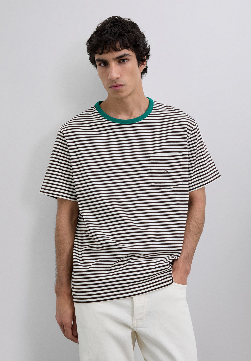 T-shirt made of 100% BCI cotton. Stripe print. Short sleeve. Contrast round neck. Pocket detail on the chest. Embroidered skull.
