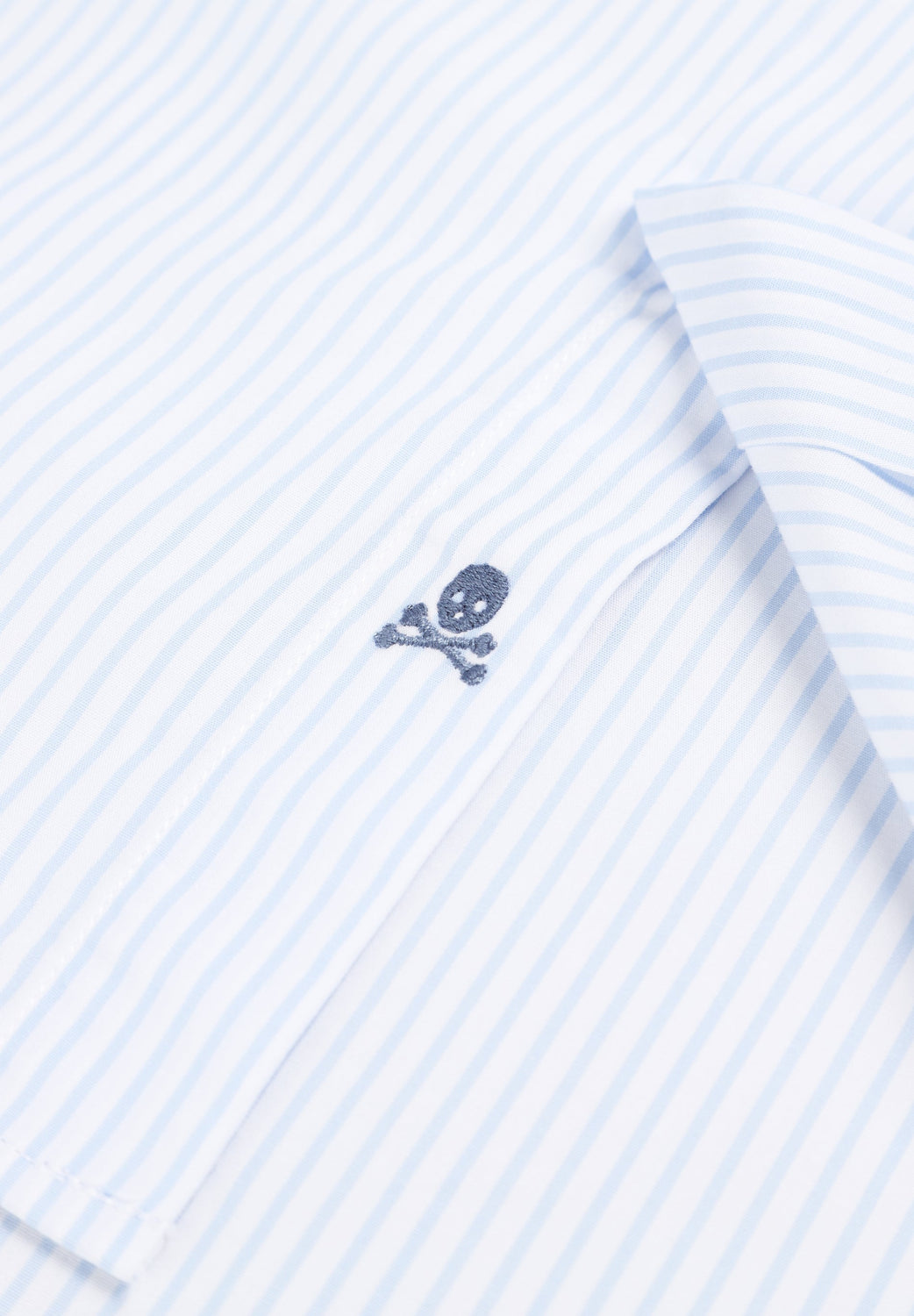 Shirt made of 100% organic BCI cotton. Long sleeves. Adjustable buttoned cuff. Embroidered logo. Front button fastening. Made in Portugal.
