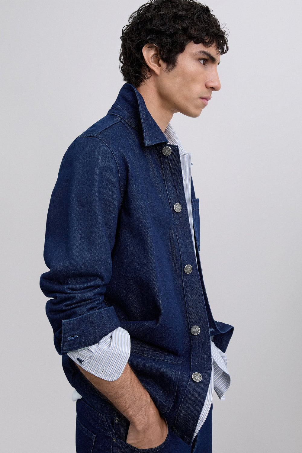 Denim jacket made of 100% cotton. Shirt collar. Slightly faded effect. Front pockets with label detail. Adjustable cuffs. Button fastening.