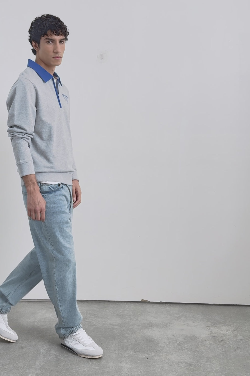 Sweatshirt made of 100% BCI cotton. Polo collar with half zip. Regular fit. Long sleeves. Contrast skull and embroidered logo. Ribbed trim.