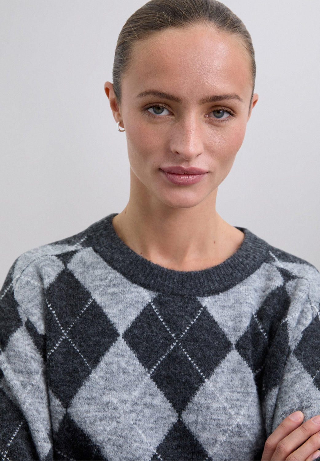 Diamond pattern sweater in a wool blend. Regular fit. Round neck and long sleeves with ribbed trim.