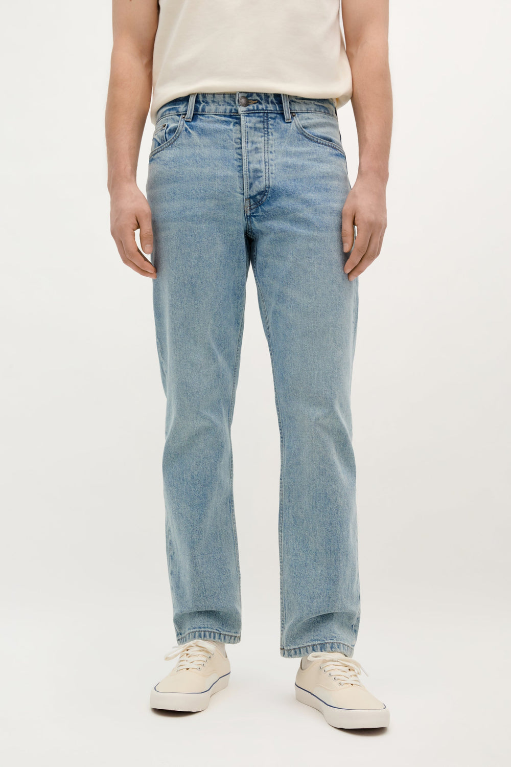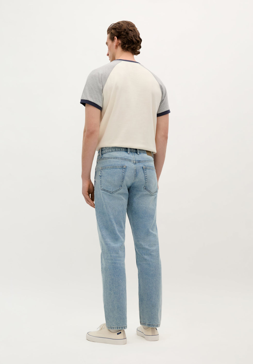 Jeans made of slightly stretchy BCI cotton. Regular fit, button and zip fastening and side and back pockets. Belt loops at the waist.