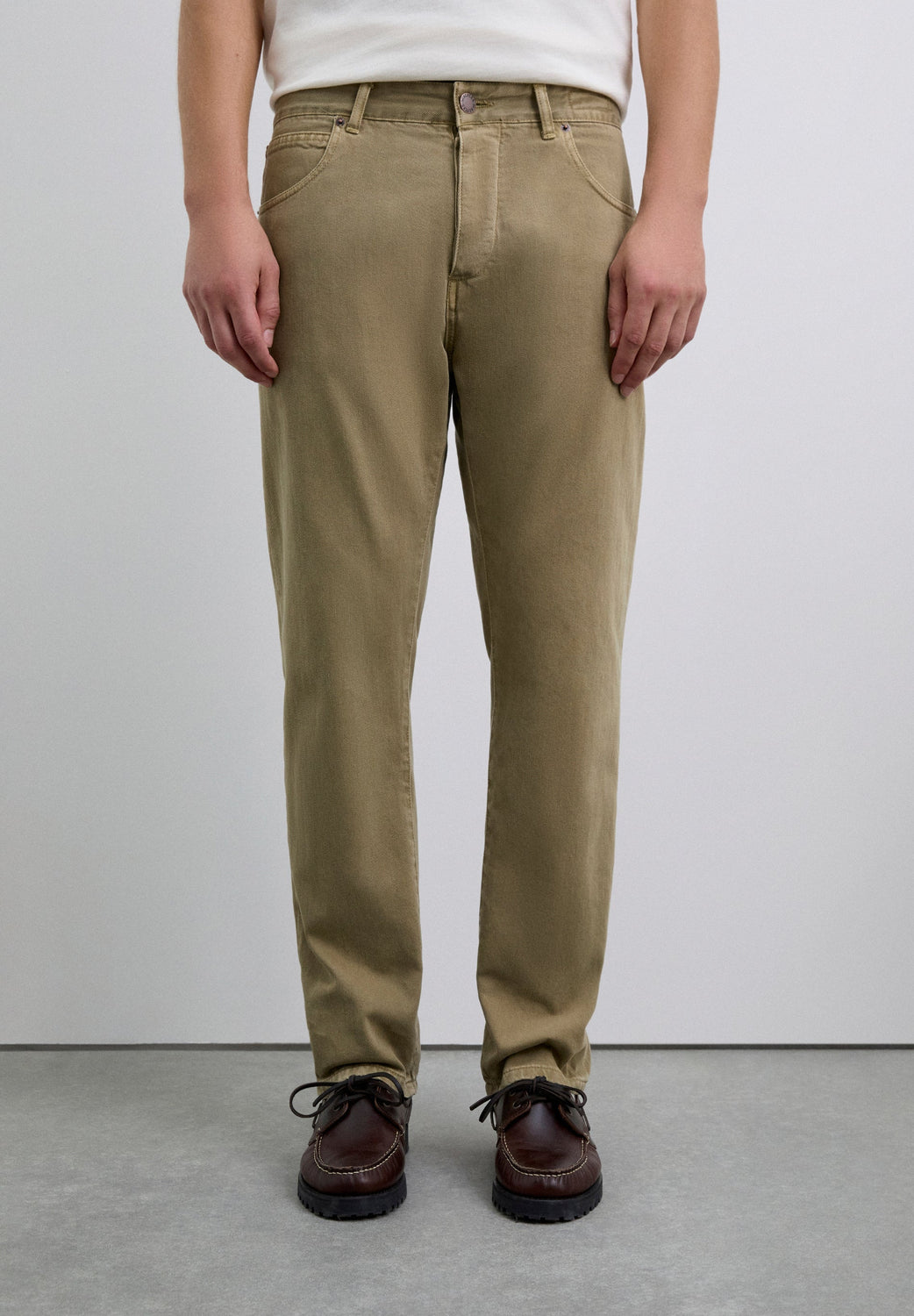 Trousers made of 100% cotton. Straight cut. Button and zip fastening. Side and back pockets. Belt loops at the waist.