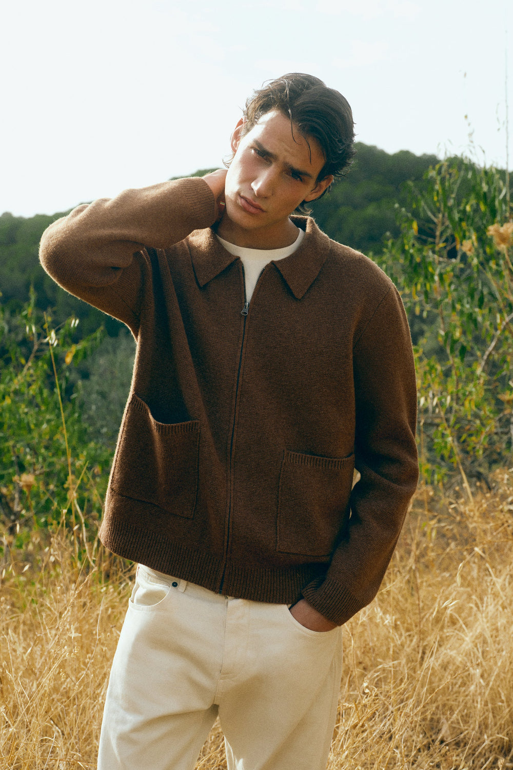 Cardigan made of 100% merino wool. Zip fastening. Front pockets. Long sleeves. Regular fit. Ribbed trim.