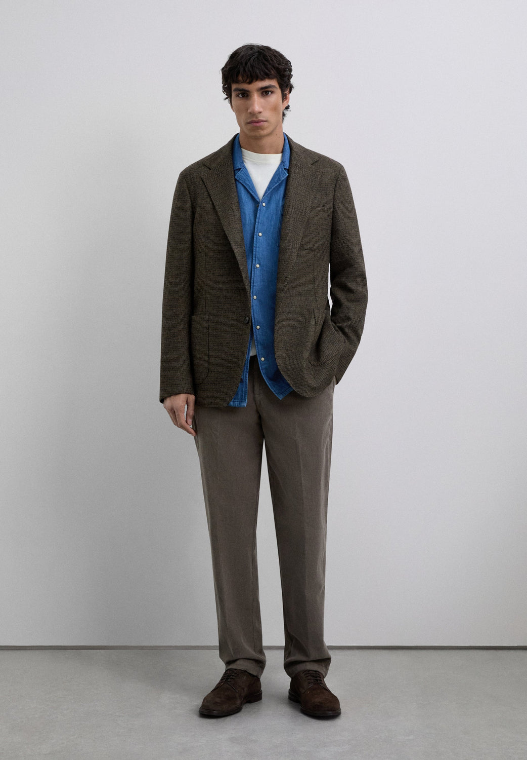 Denim shirt made of 100% BCI cotton. Regular fit. Shirt collar. Button-up front. Long sleeves. Buttoned cuffs. Chest pocket. Embroidered logo detail on the placket.