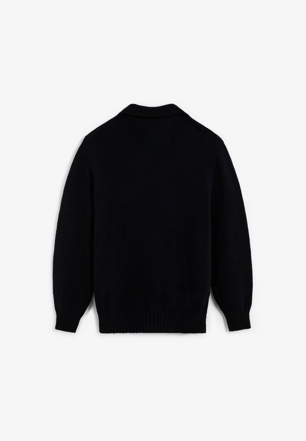 Knit sweater made of 100% BCI cotton. Polo shirt-style collar. Long sleeves. Ribbed trim.