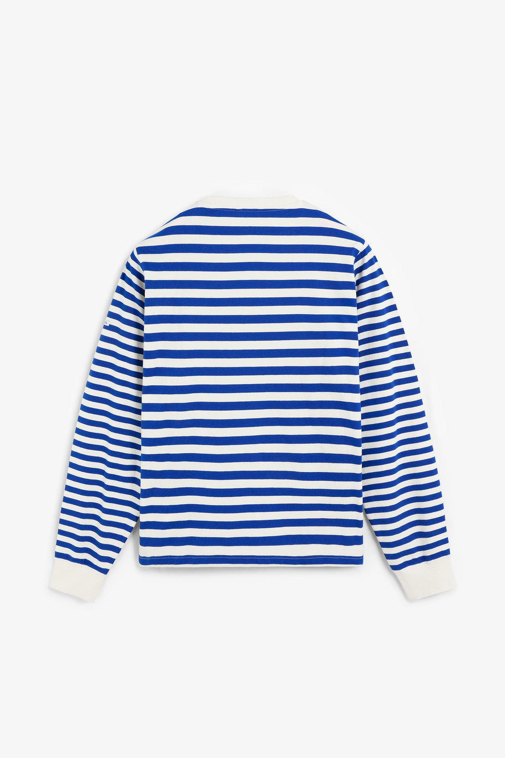 Camiseta con estampado de rayas. Confeccionada en 100% algodón BCI. Corte Regular Fit. Cuello redondo. Contraste en cuello y puños. Manga larga.