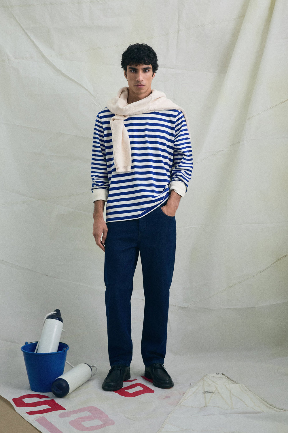 T-shirt with stripe print. Made of 100% BCI cotton. Regular fit. Round neck. Contrast neckline and cuff. Long sleeves.